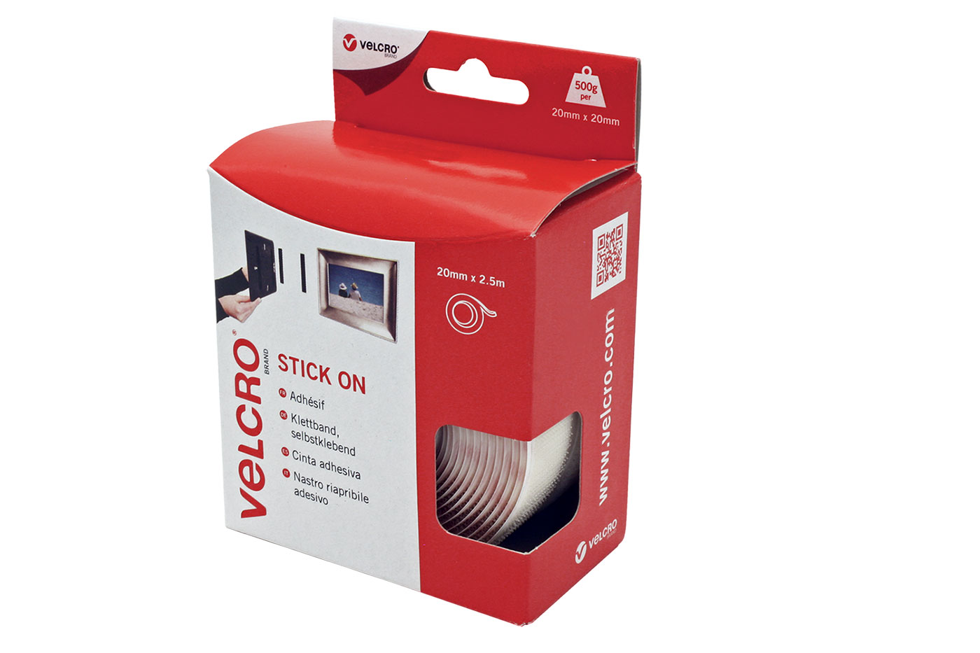 VELCRO Páska se suchým zipem, nalepovací, 20mm x 2,5m, bílá