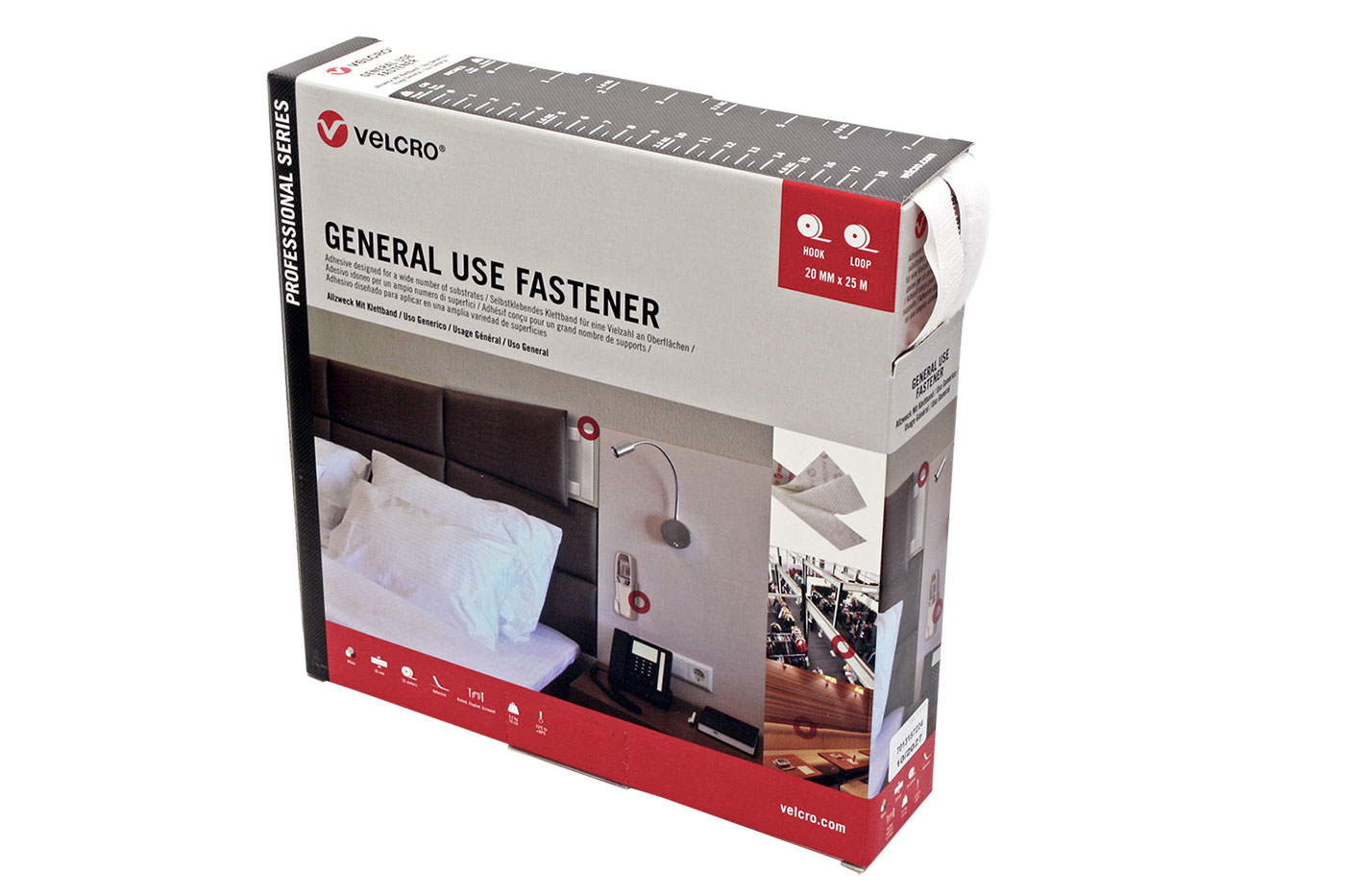 VELCRO Páska se suchým zipem, pro všeobecné použití, nalepovací, 20mm x 25m, bílá