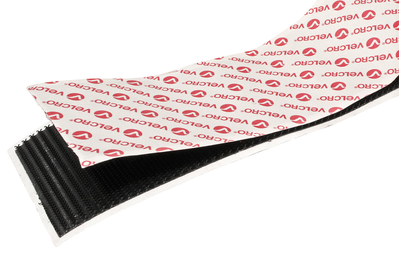 Suchý zip opatřený lepicím podkladem. Provedení se zpevněnými háčky dosahuje pevné spojení i pro namáhané spoje.