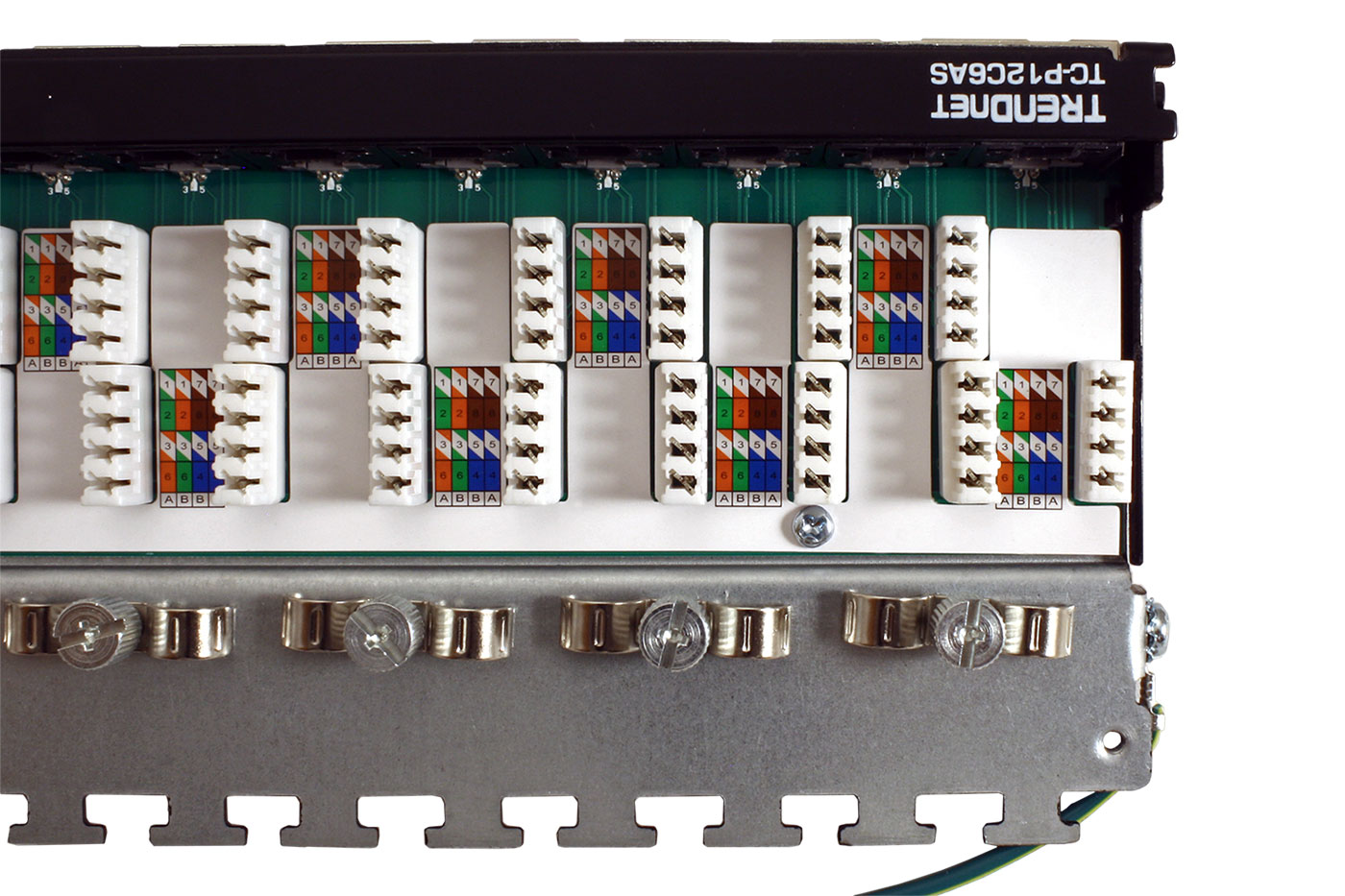 Patchpanel pro strukturovanou kabeláž kat. 6a s nařezávacími konektory LSA+.