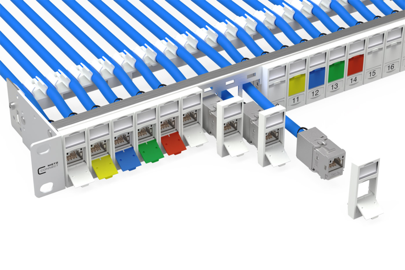 METZ CONNECT Patchpanel pro 19", stíněný, 24 portů, 24x MC modul kat. 6a 180°, šedá