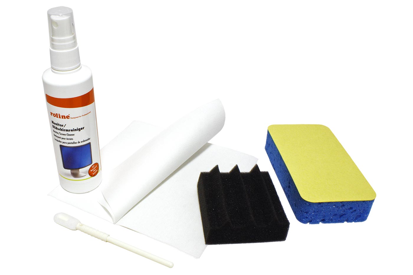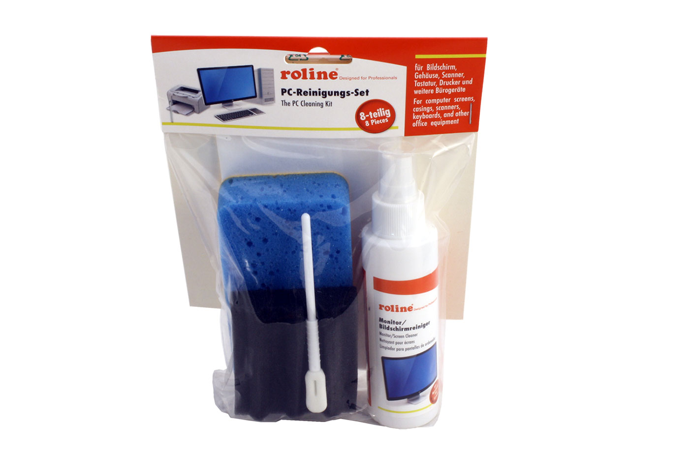 ROLINE PC čistící sada, 125ml roztok (rozprašovač), 4x utěrka, houbička, tyčinka