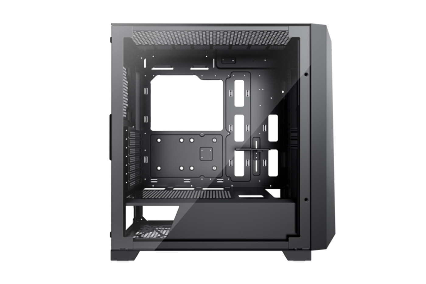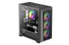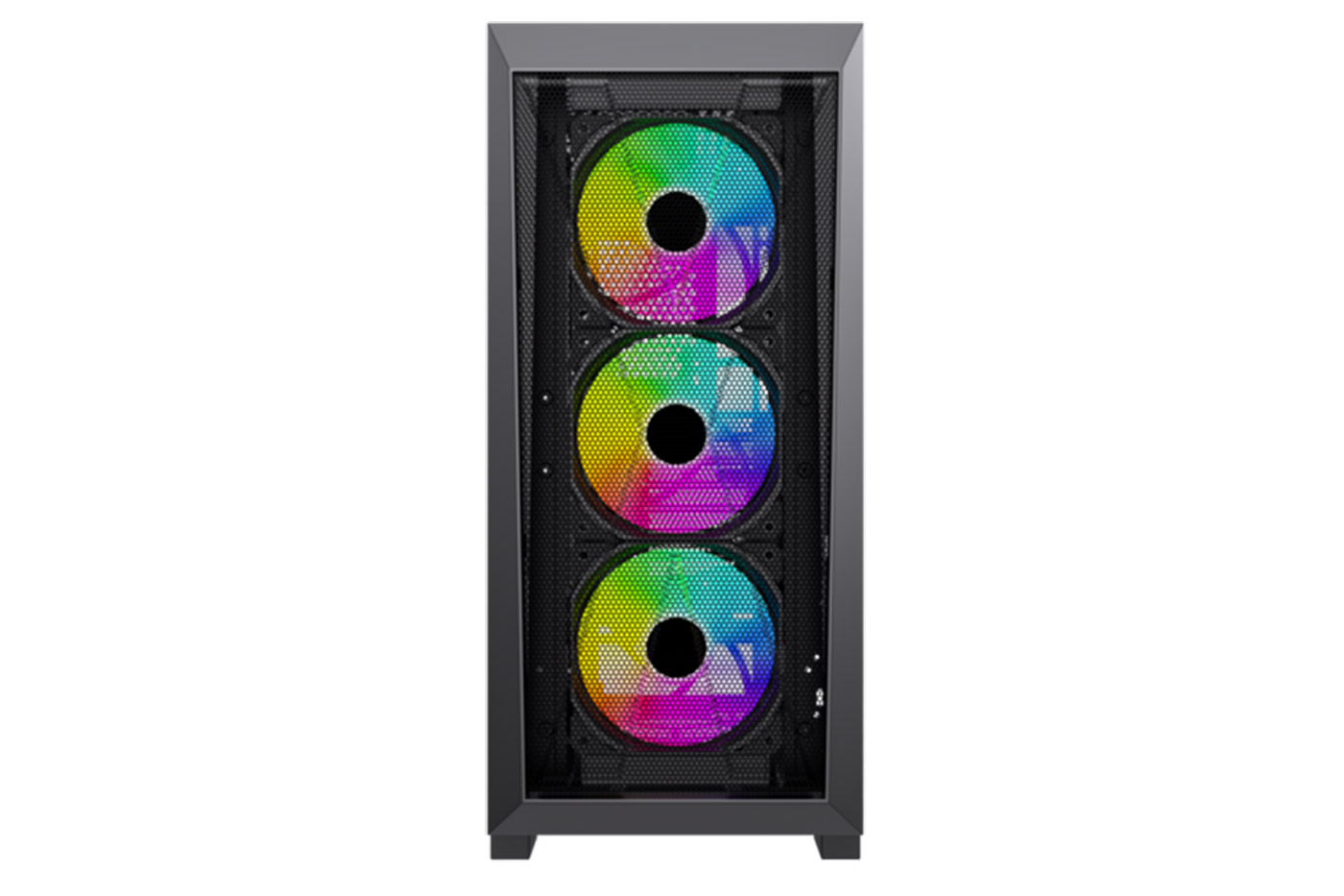 Skříň elegantnímu černému designu, ideální pro herní počítač. S podporou ARGB osvětlení na předním a bočnímu panelu z tvrzeného skla.;