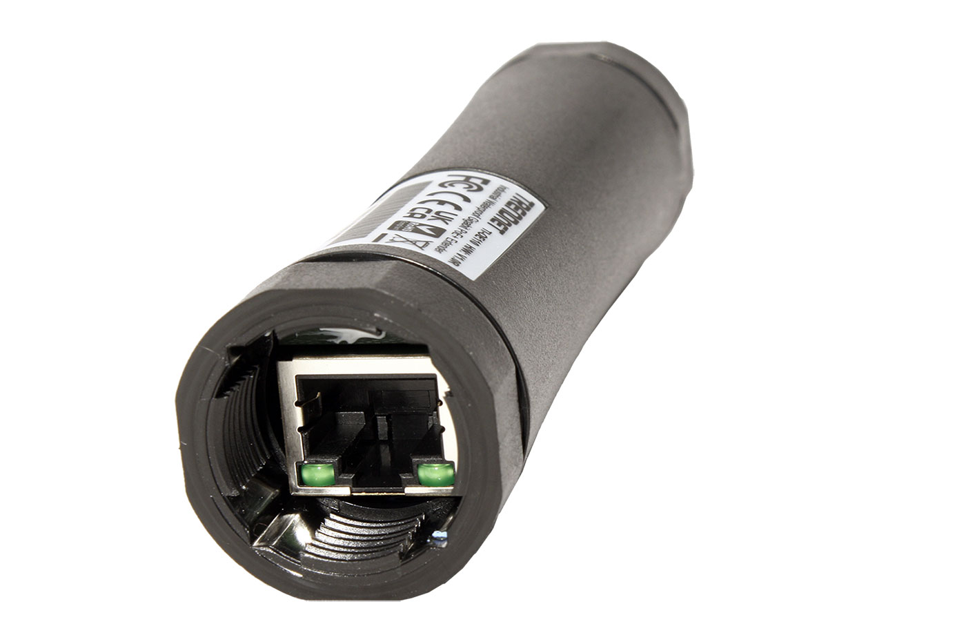 Vodotěsný průmyslový adaptér pro prodloužení napájení POE v sítích 10/100/1000 Mbps.