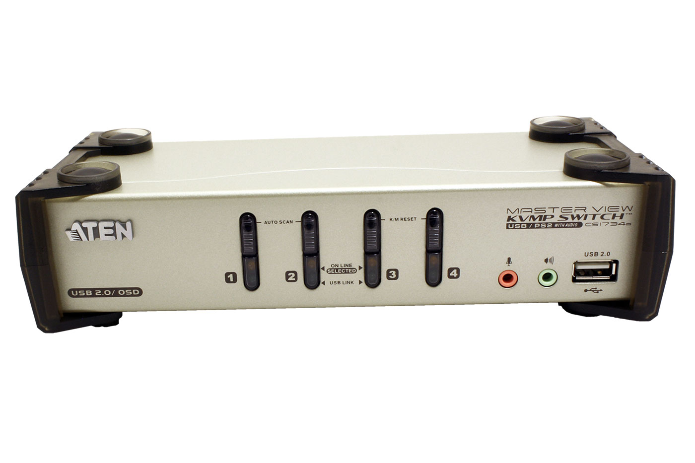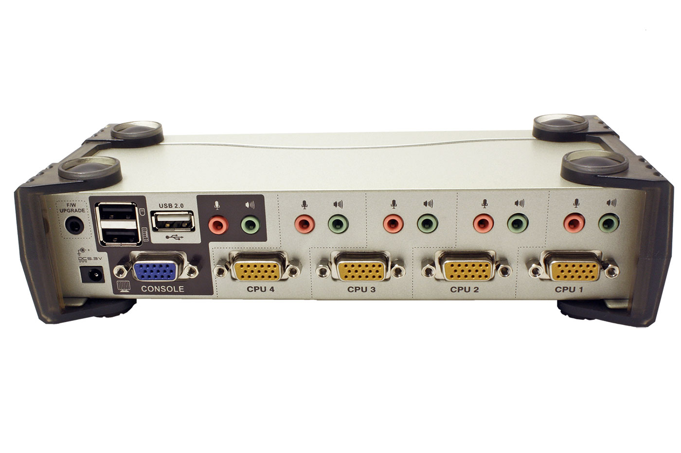 Přepínač pro ovládání 4x počítačů (klávesnice, video, myš, audio) z jednoho stanoviště s OSD. Je možno připojit PC s USB i PS/2 klávesnicí (volí se použitím příslušného kabelu). Konektory pro připojení 2 USB zařízení.