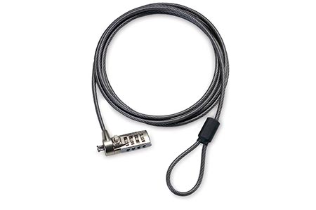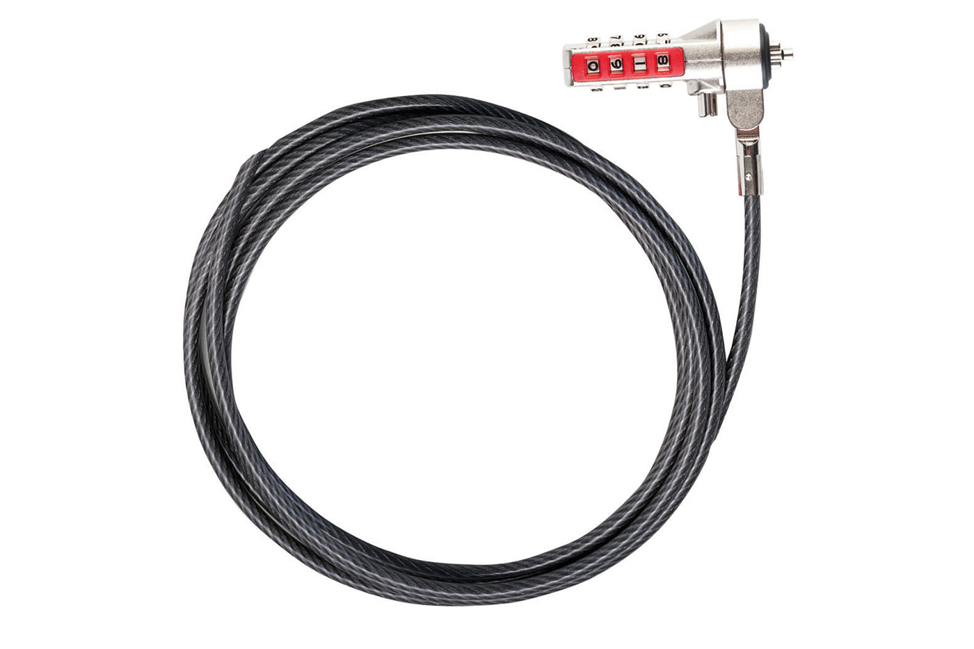 Zámek s ocelovým lankem pro zabezpečení notebooku. Zamykání pomocí 4místného kódu.