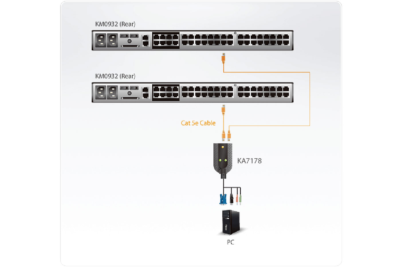 Koncový modul KVM (klávesnice, video, myš, audio) pro KVM přepínače ATEN. Modul umožňuje připojení až ke dvěma KVM přepínačům.
