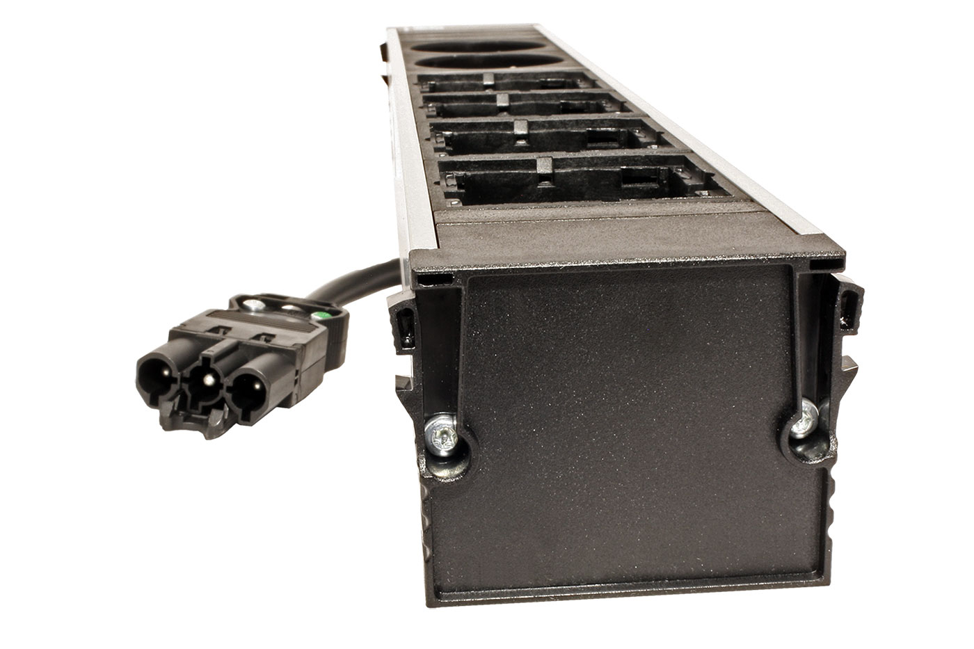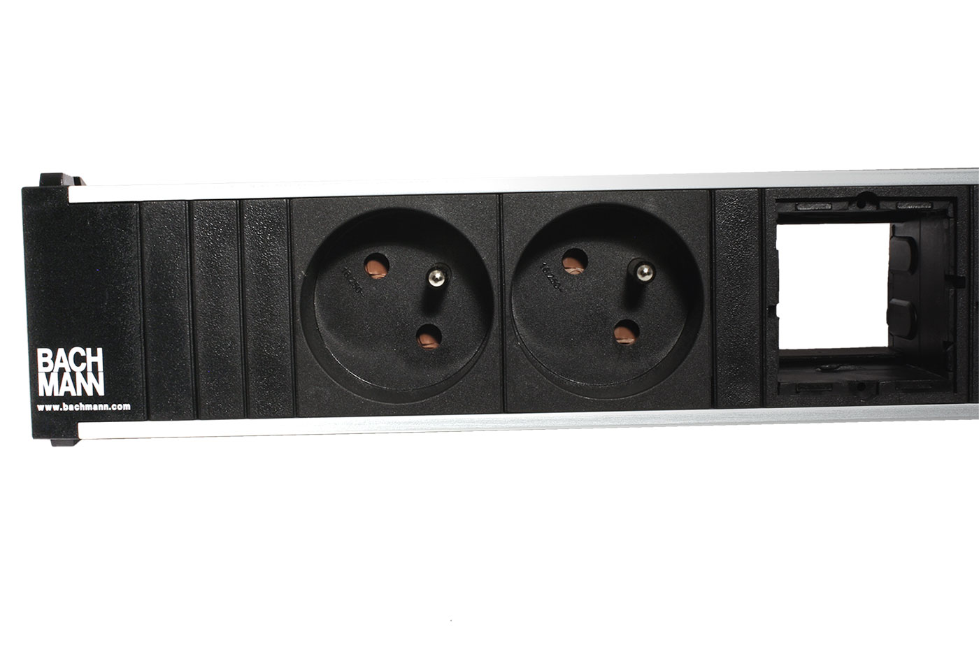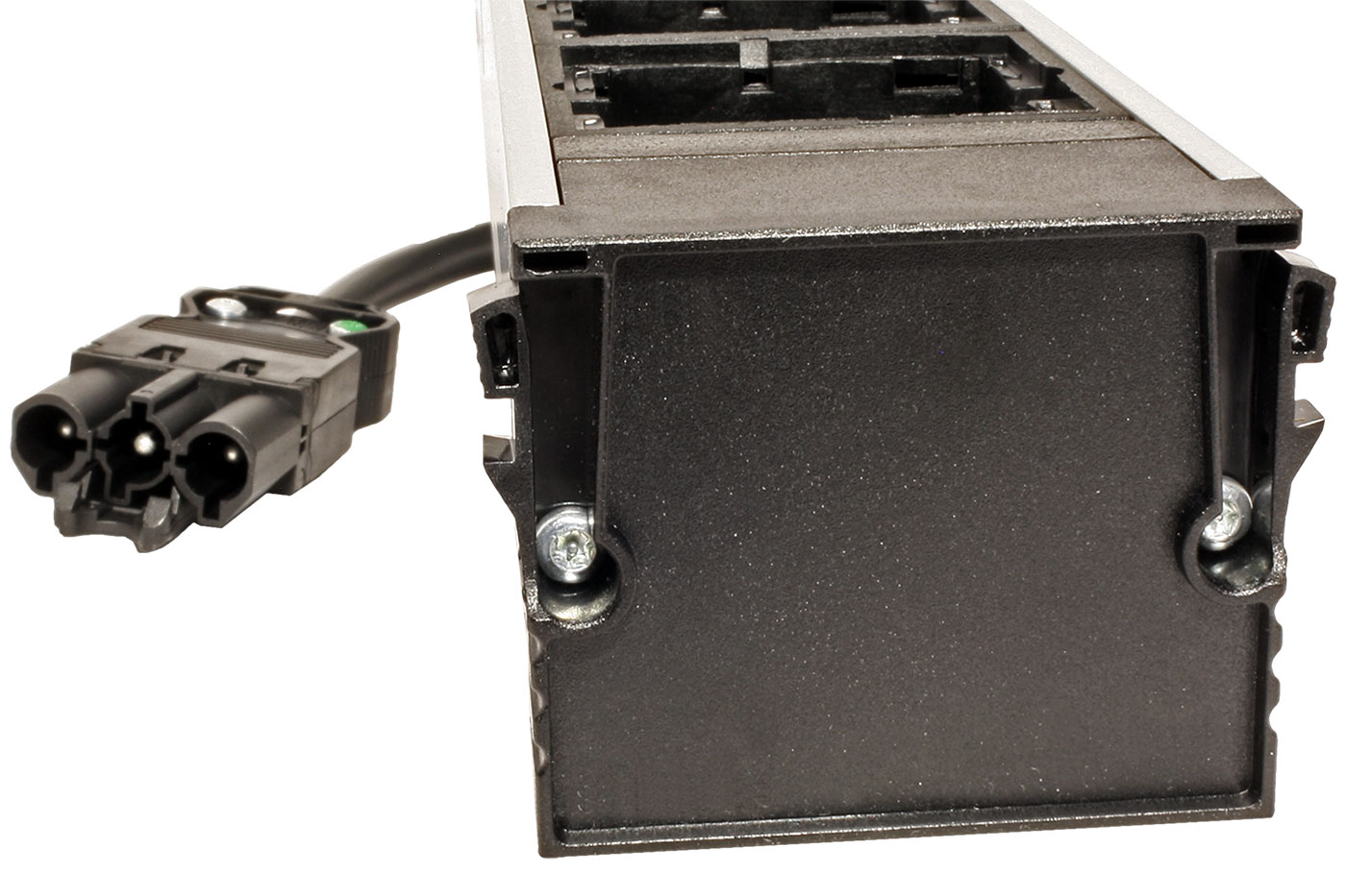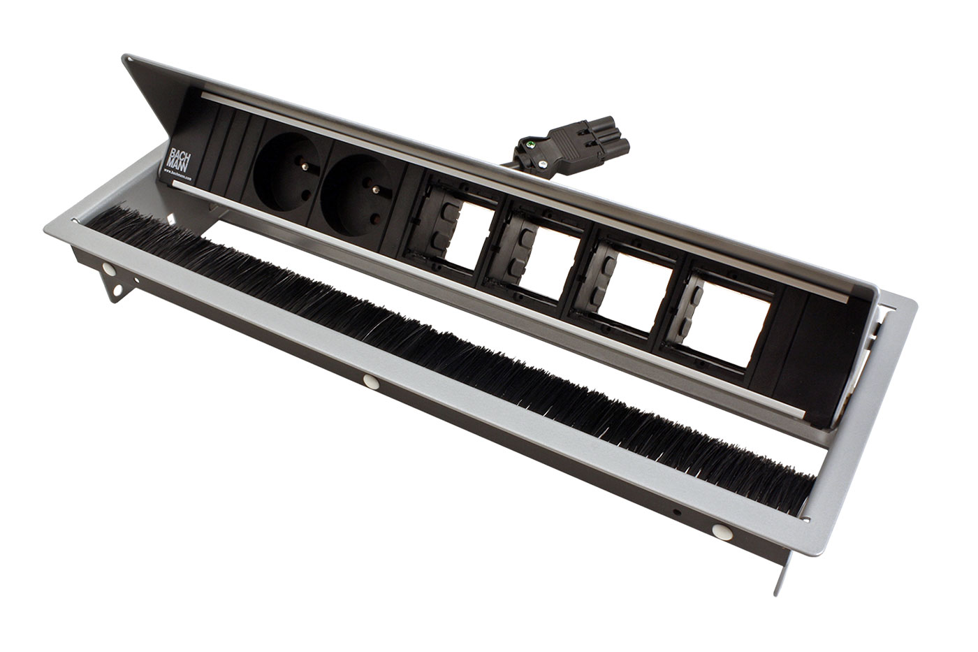 Box se 2 napájecími zásuvkami (CZ) a 4 volnými pozicemi, určený pro montáž do dlouhého rámu systému CONI.