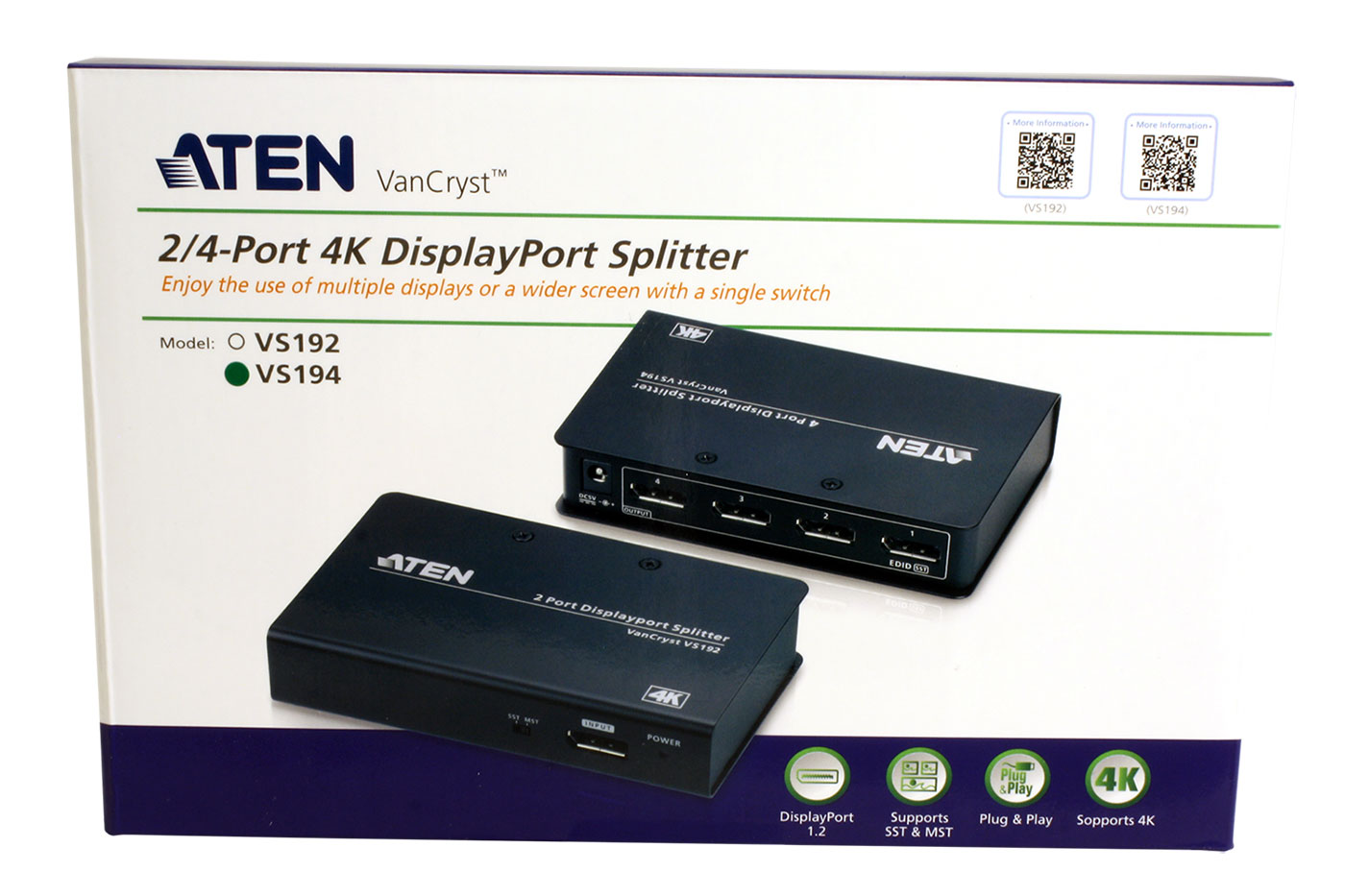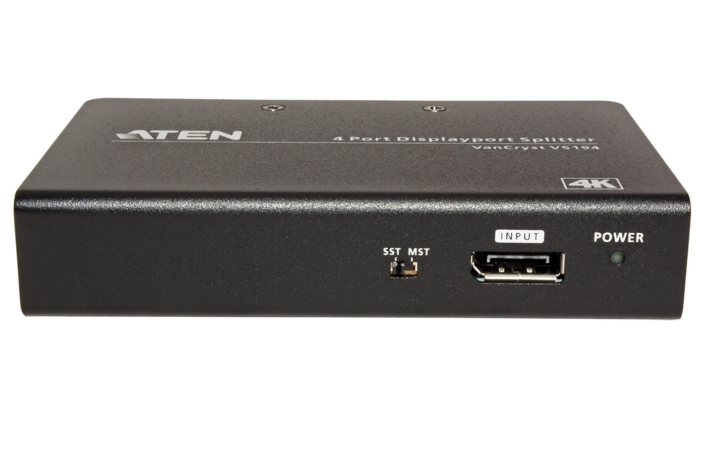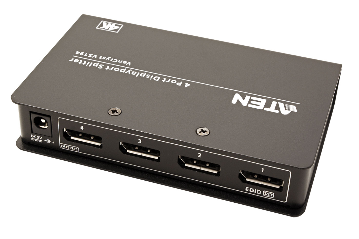 Rozbočení DisplayPort audio/video signálu do 4 výstupů. Rozbočovač podporuje rozlišení až 4K @60Hz (4:4:4).