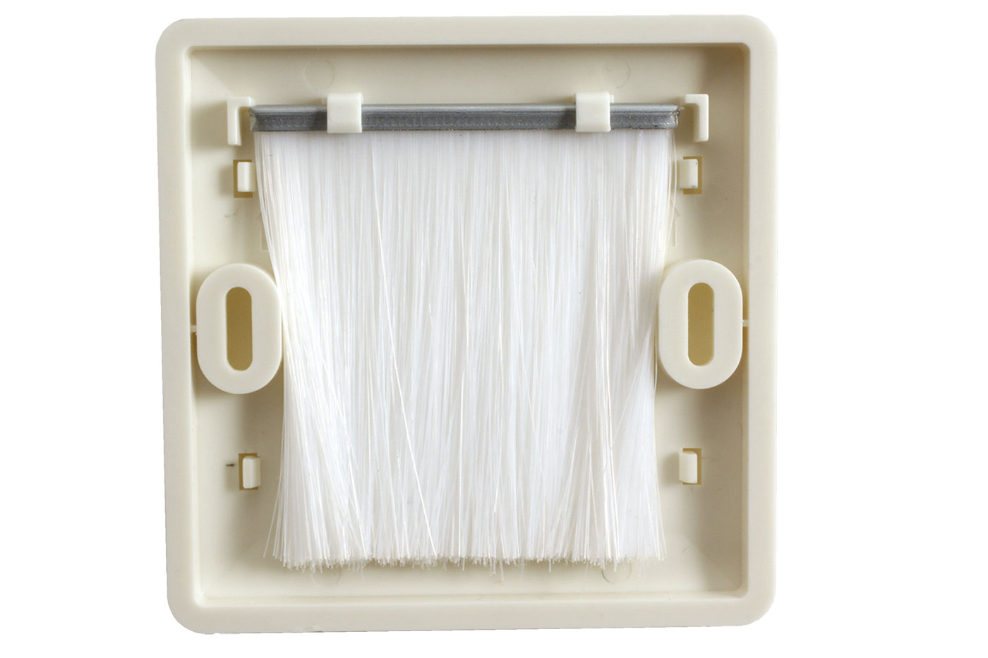Je určení pro snadné vyvedení kabelů z montážní krabice. Integrovaný kartáč zabraňuje vnikání prachu a nečistot.
