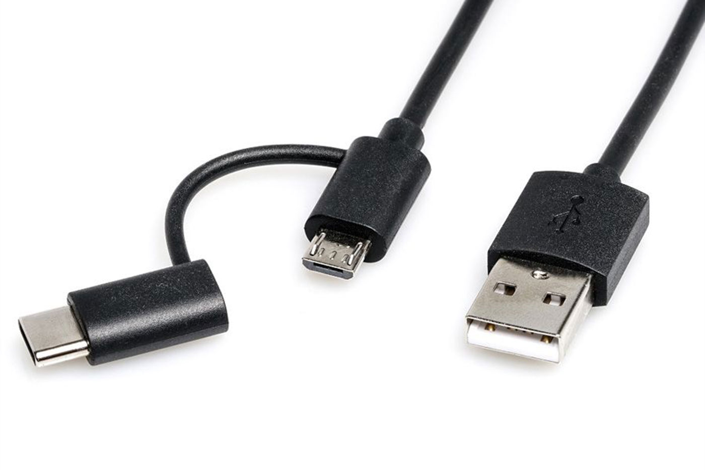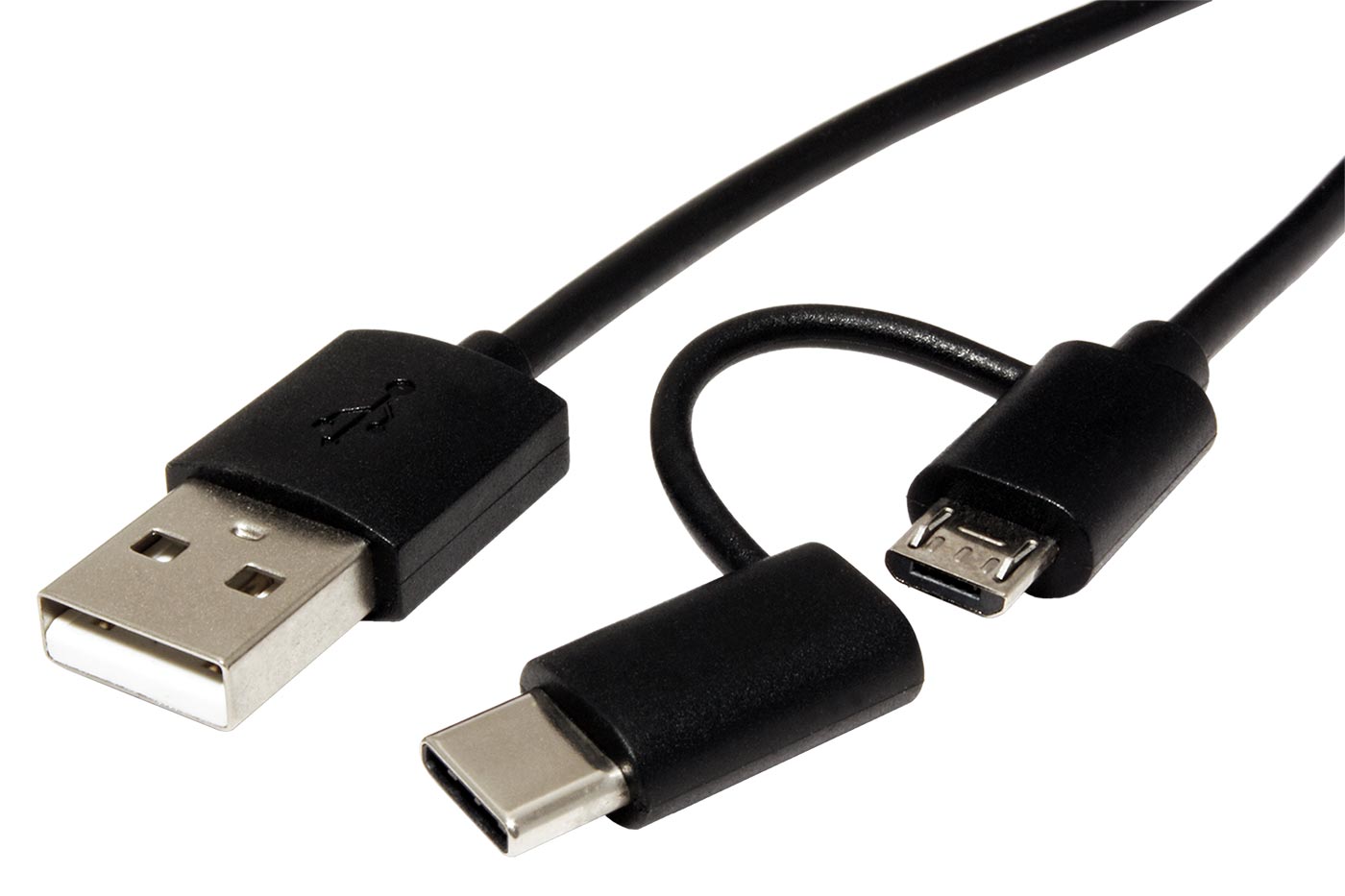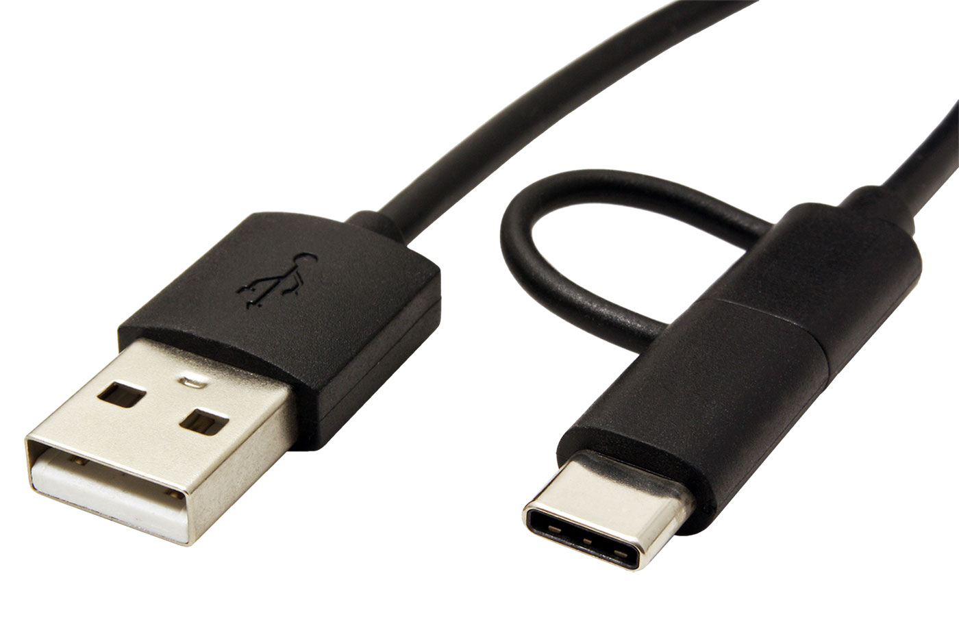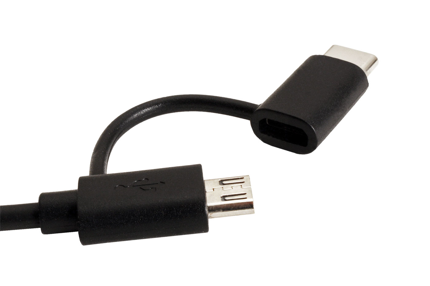 USB kabel s konektorem USB A a microUSB B a redukcí na USB C.