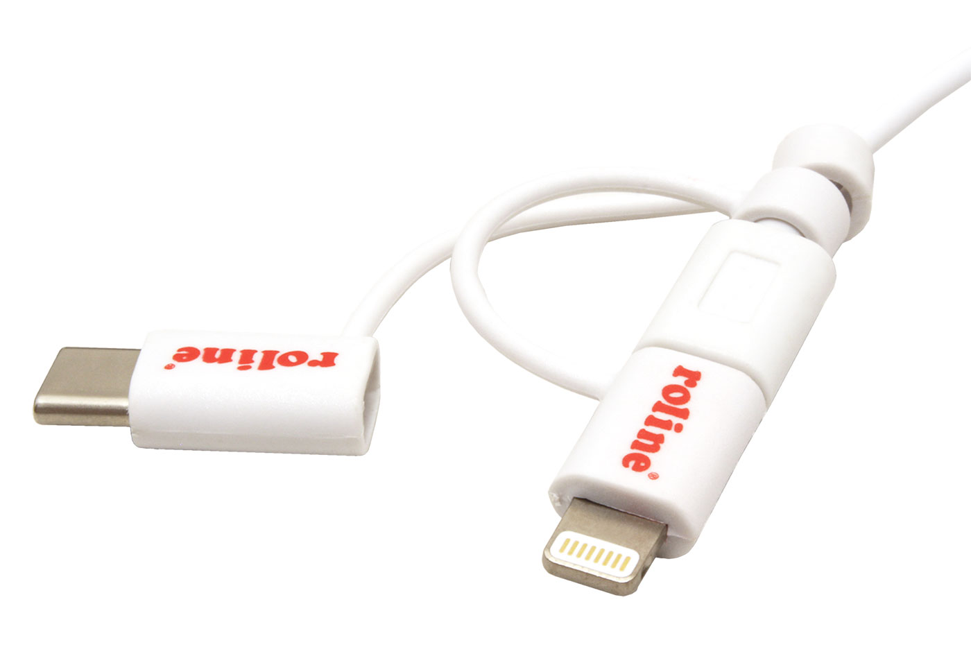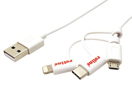 USB kabel pro připojení zařízení s konektorem micro USB, nebo Apple Lightning, nebo USB C.