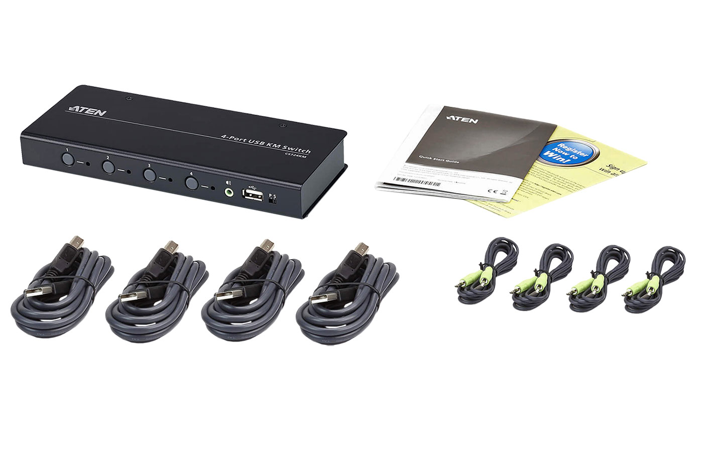 Přepínač pro ovládání 4 PC (nebo 8 PC přes daisy chain) jednou USB klávesnicí a myší.