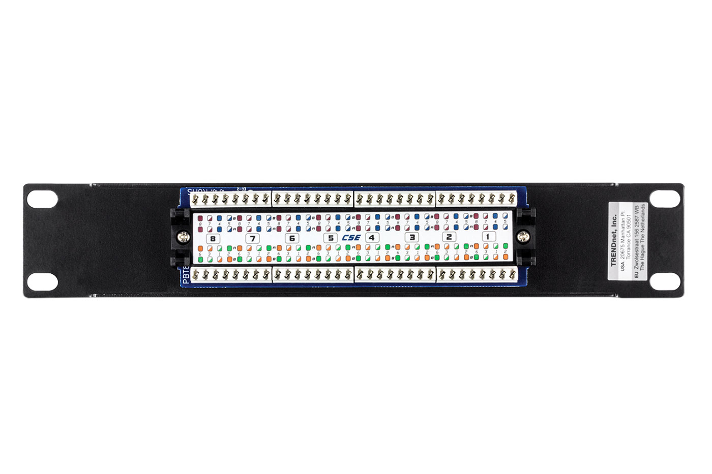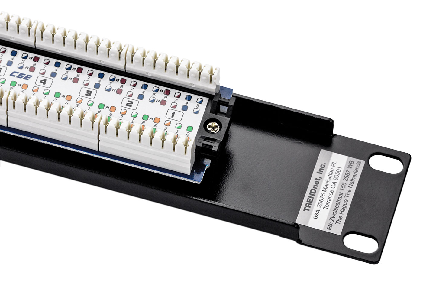 Patchpanel pro strukturovanou kabeláž kat. 5e s nařezávacími konektory LSA.
