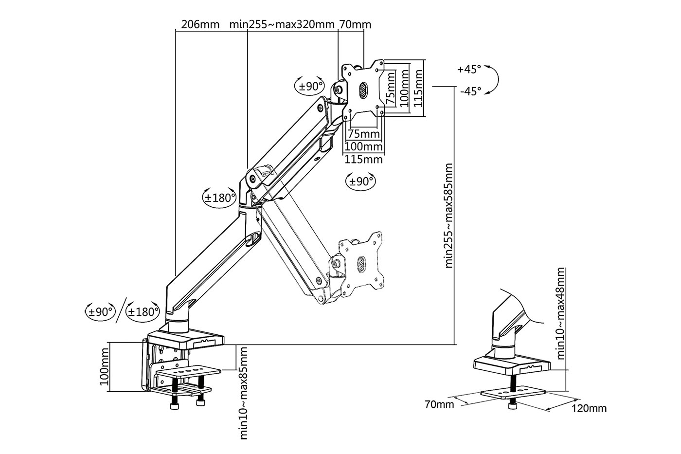 Pro montáž LCD monitoru na stůl. Díky 5 kloubům umožňuje přesné nastavení monitoru v prostoru.