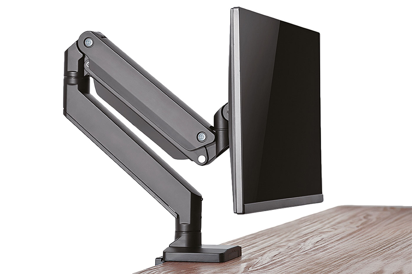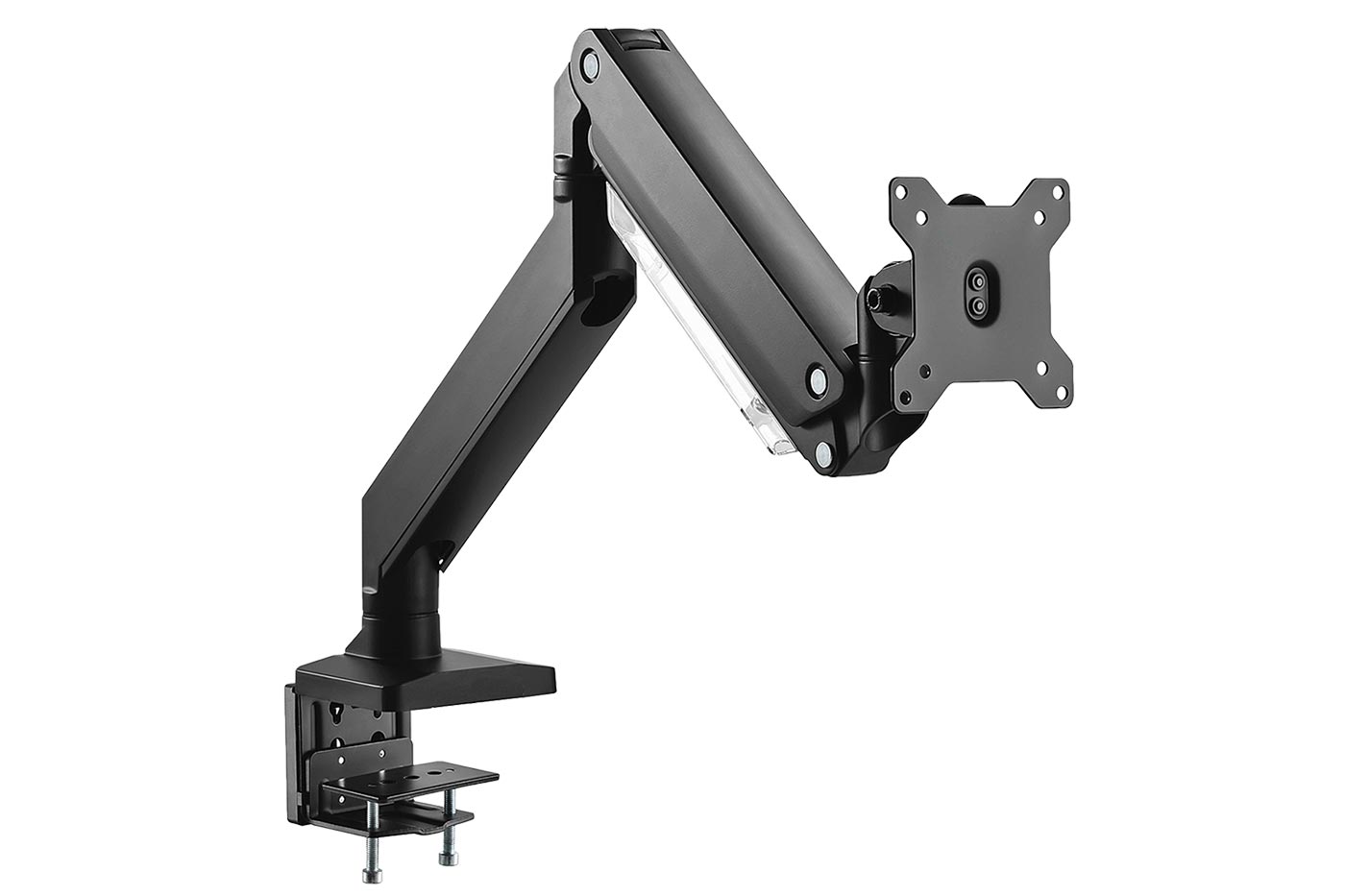 Držák LCD displeje s nastavitelnou hodnotou zatížení ramene a s plynovým tlumičem. Montáž na stůl.