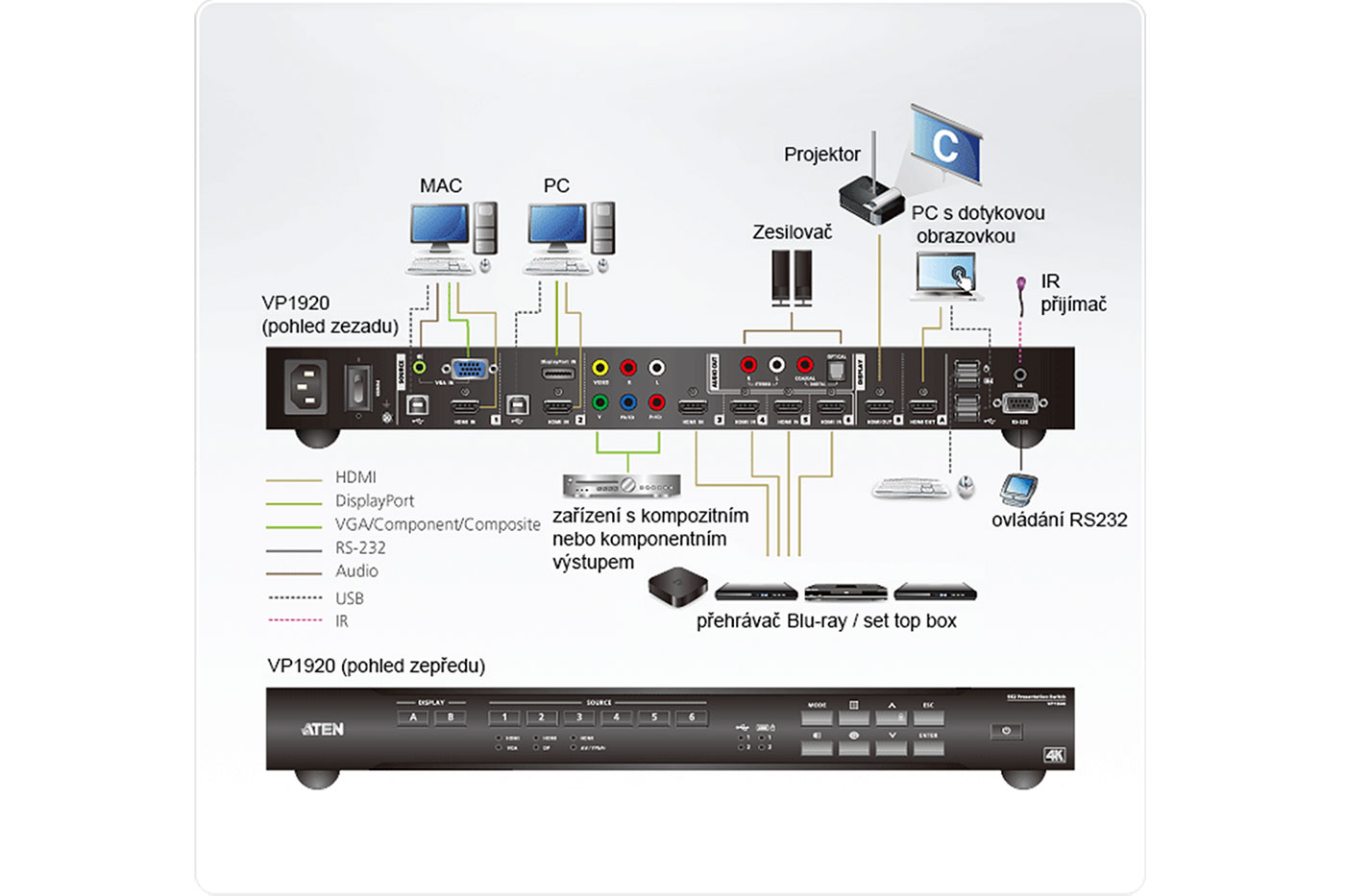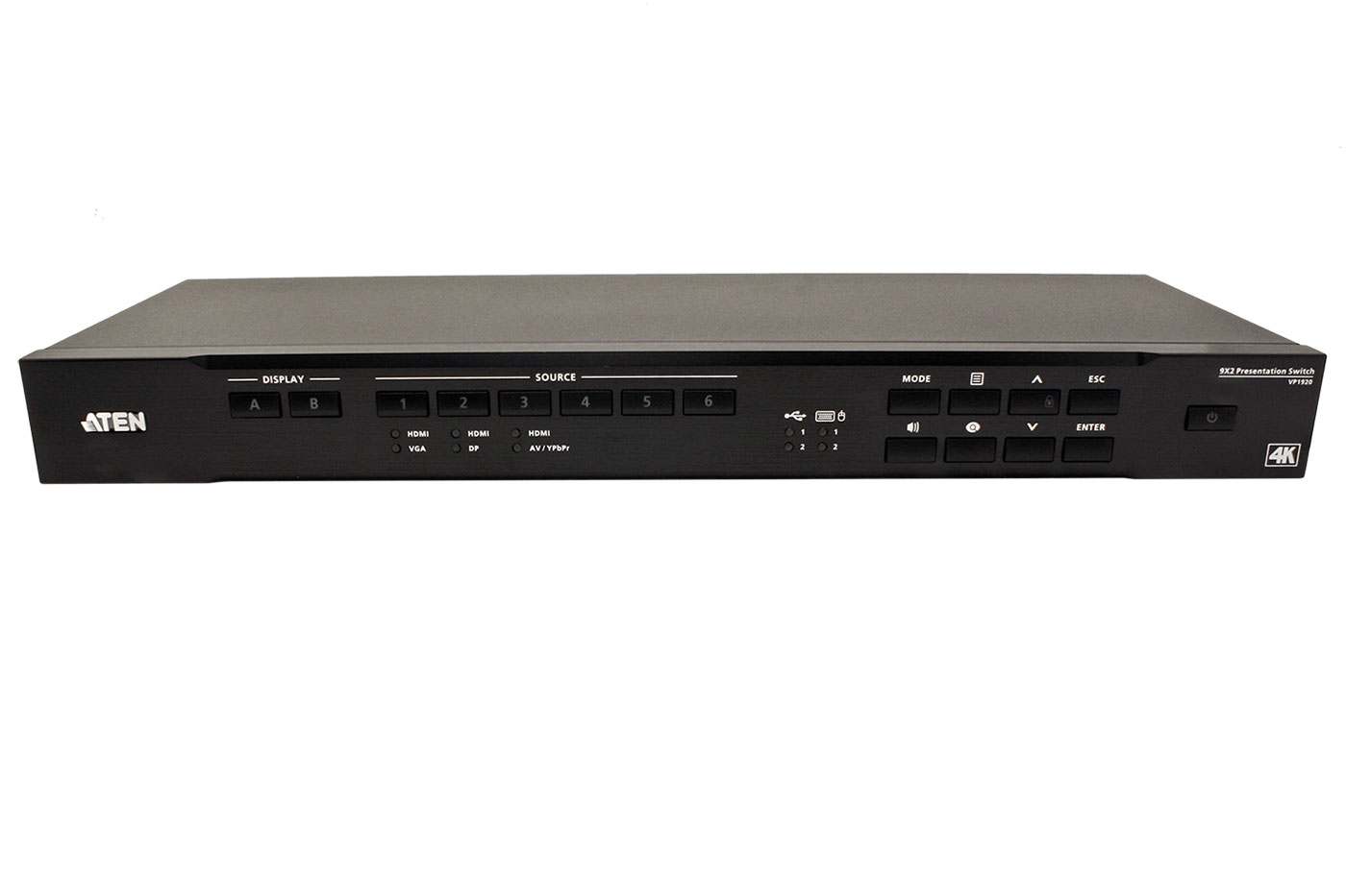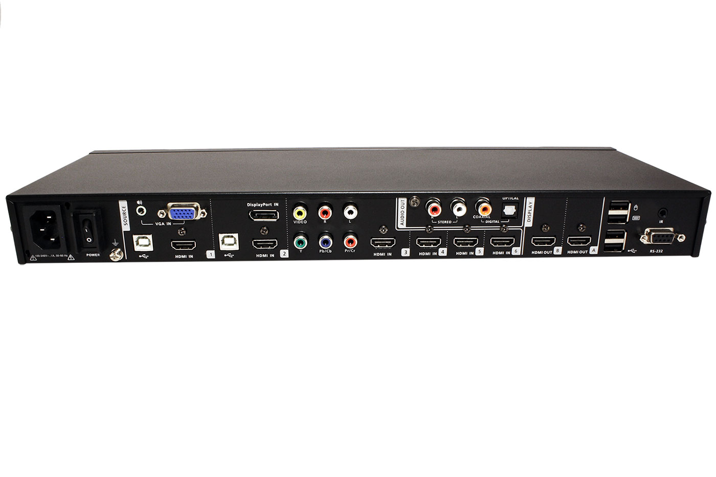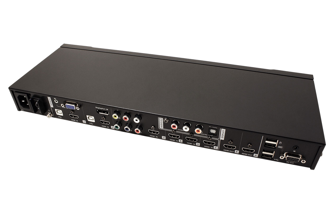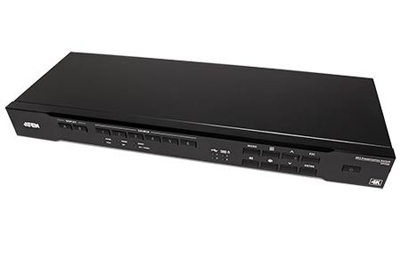 Multifunkční prezentační maticový přepínač s jednoduchým ovládáním přes OSD, RS232 a infračervené dálkové ovládání. Přepínač podporuje rozlišení až 4K.