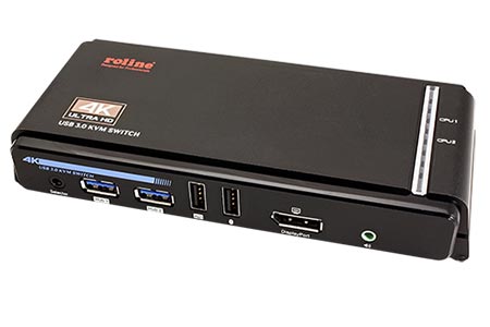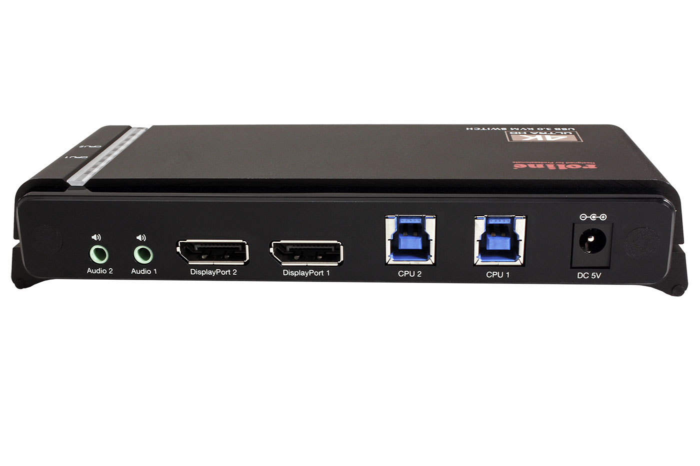 Přepínač pro ovládání 2 počítačů (klávesnice, video, myš, audio) z jednoho stanoviště (DP + USB). Je možno připojit PC s USB klávesnicí. Možnost sdílet USB 5Gb/s (USB 3.2 Gen.1 / USB 3.0) zařízení.