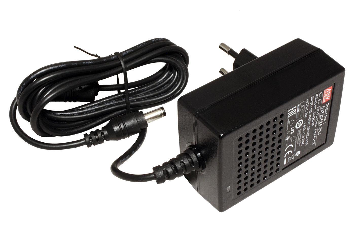 Napájecí adaptér 230V - 24V/1,04A s koncovkou 5,5 x 2,1mm.