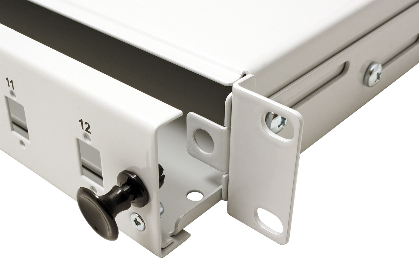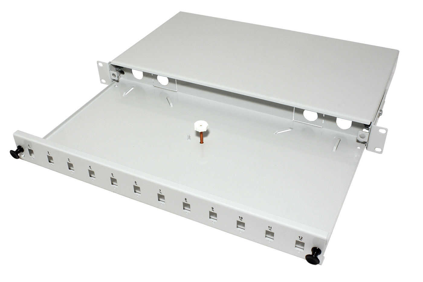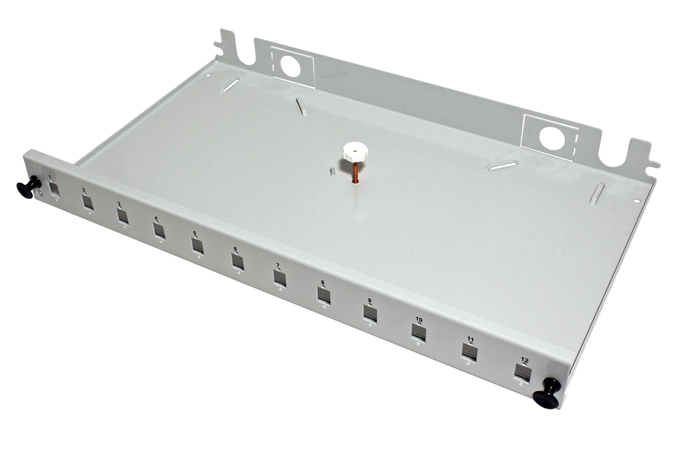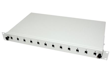 19" optická vana pro zakončení optických kabelů. 12 pozic pro SC simplex nebo LC duplex.