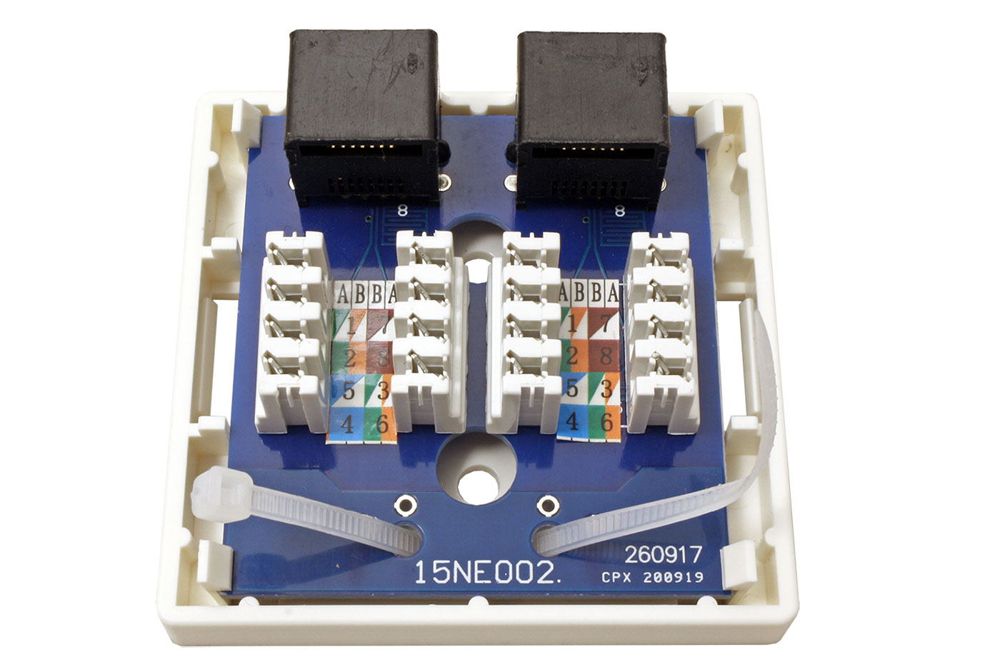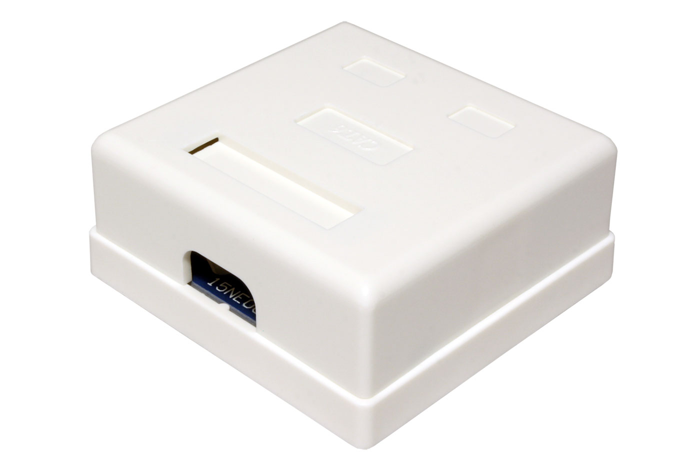 Nestíněná zásuvka pro kabeláž kategorie 6. Montáž na omítku.