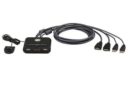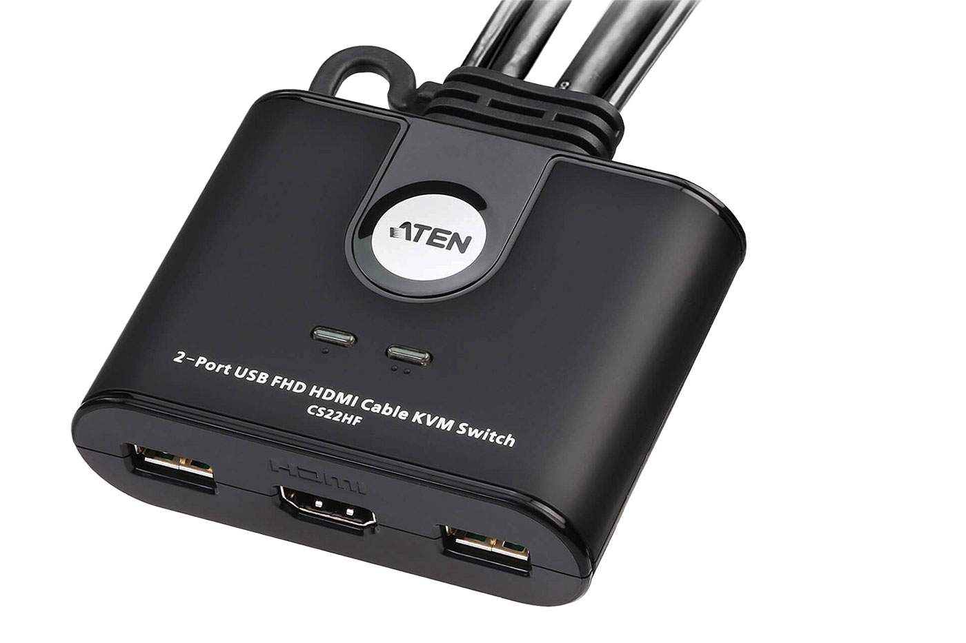 Aten KVM přepínač (USB, HDMI) 2:1, 1080p60Hz, integrované kabely (CS22HF)