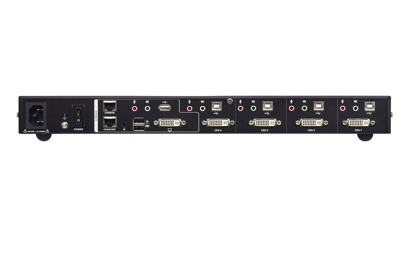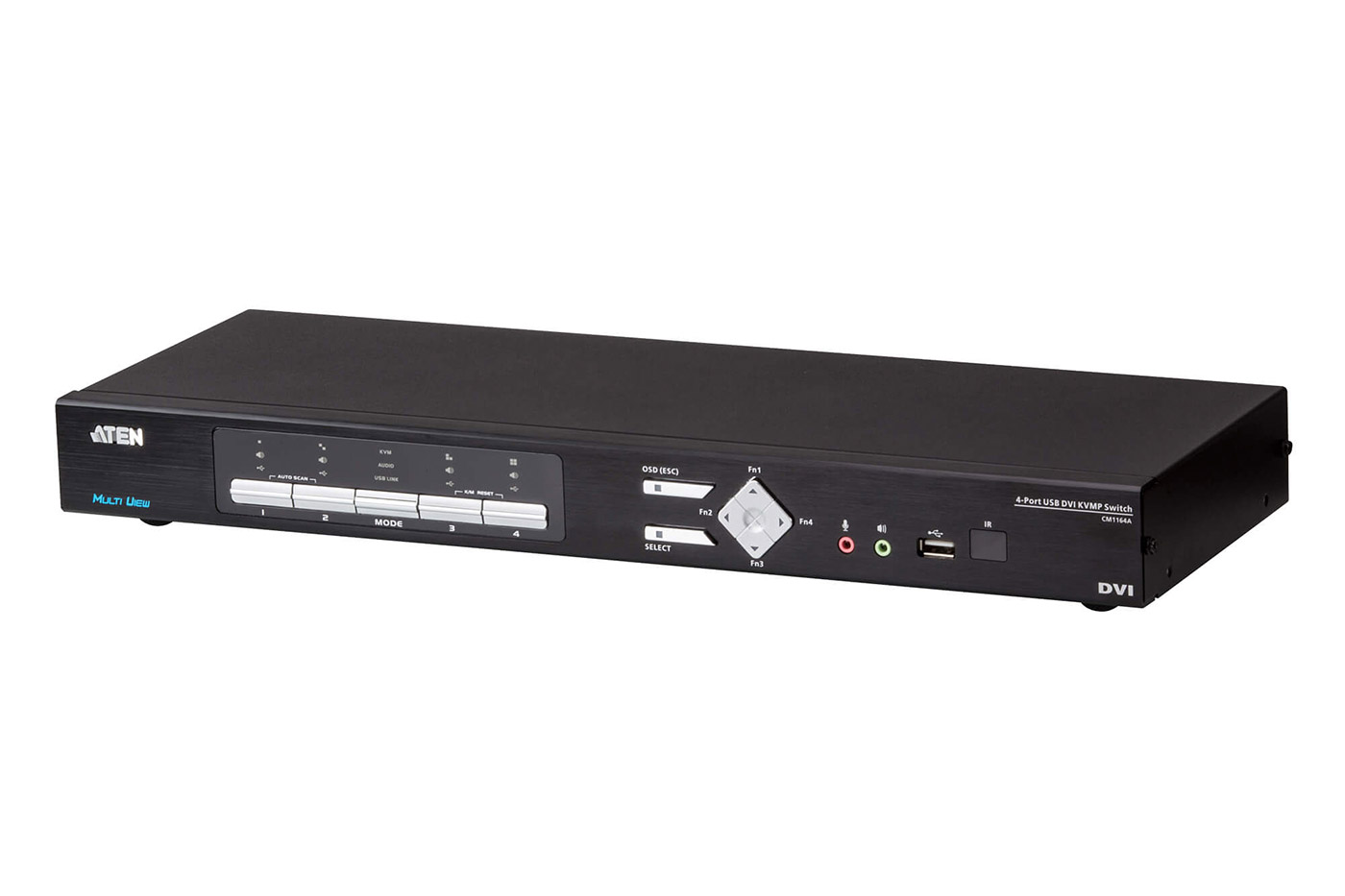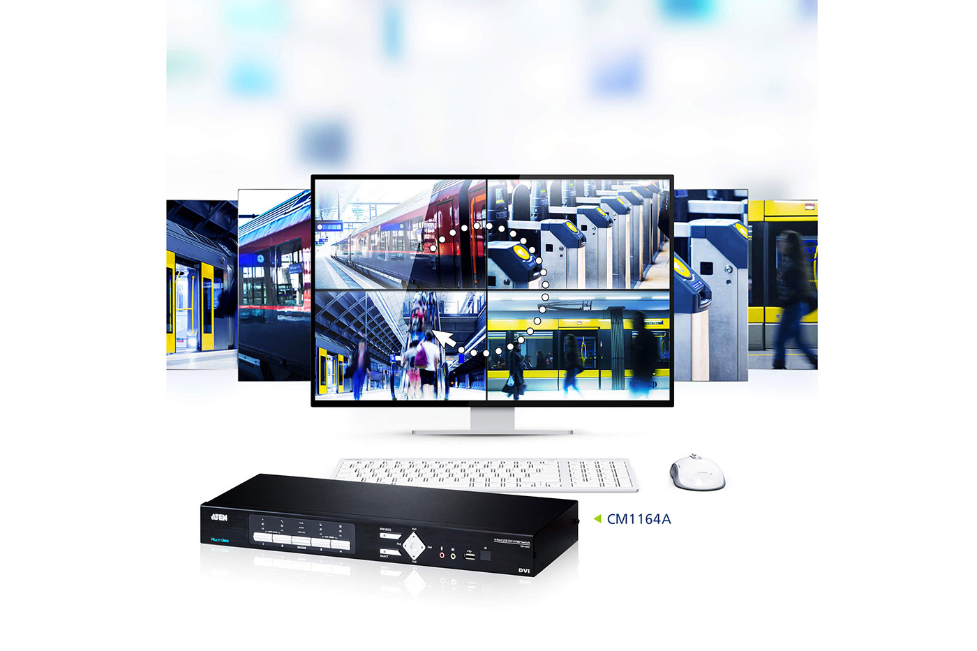 KVM přepínač ze 4 vstupů na 1 výstup s možností zobrazení více vstupů na jeden displej.
