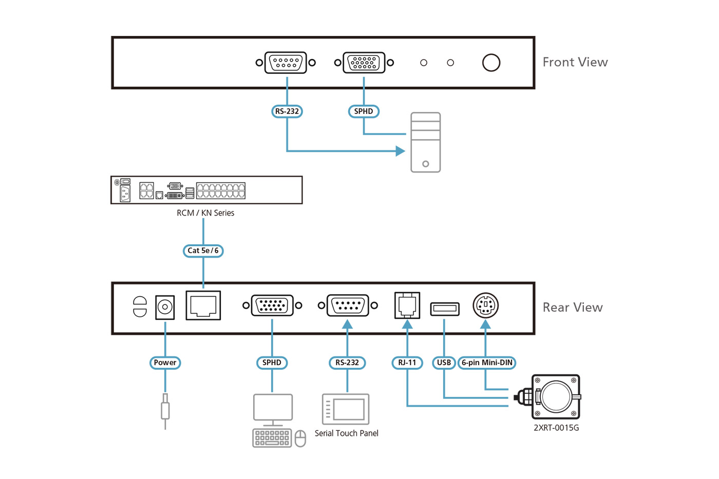 Koncový modul KVM (klávesnice, video, myš) pro KVM přepínače ATEN s výstupem na lokální konzoli.