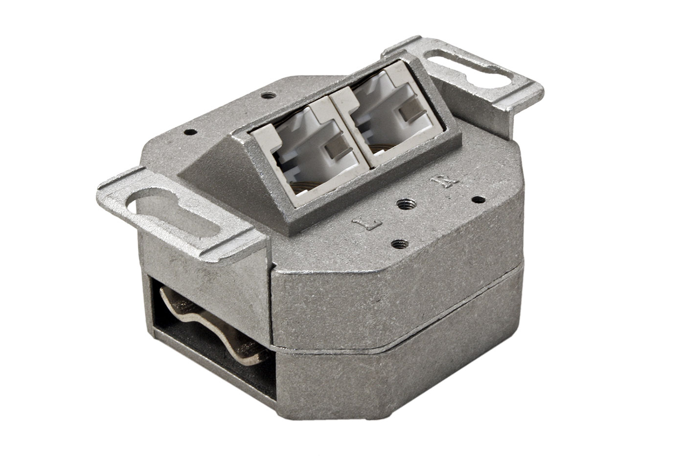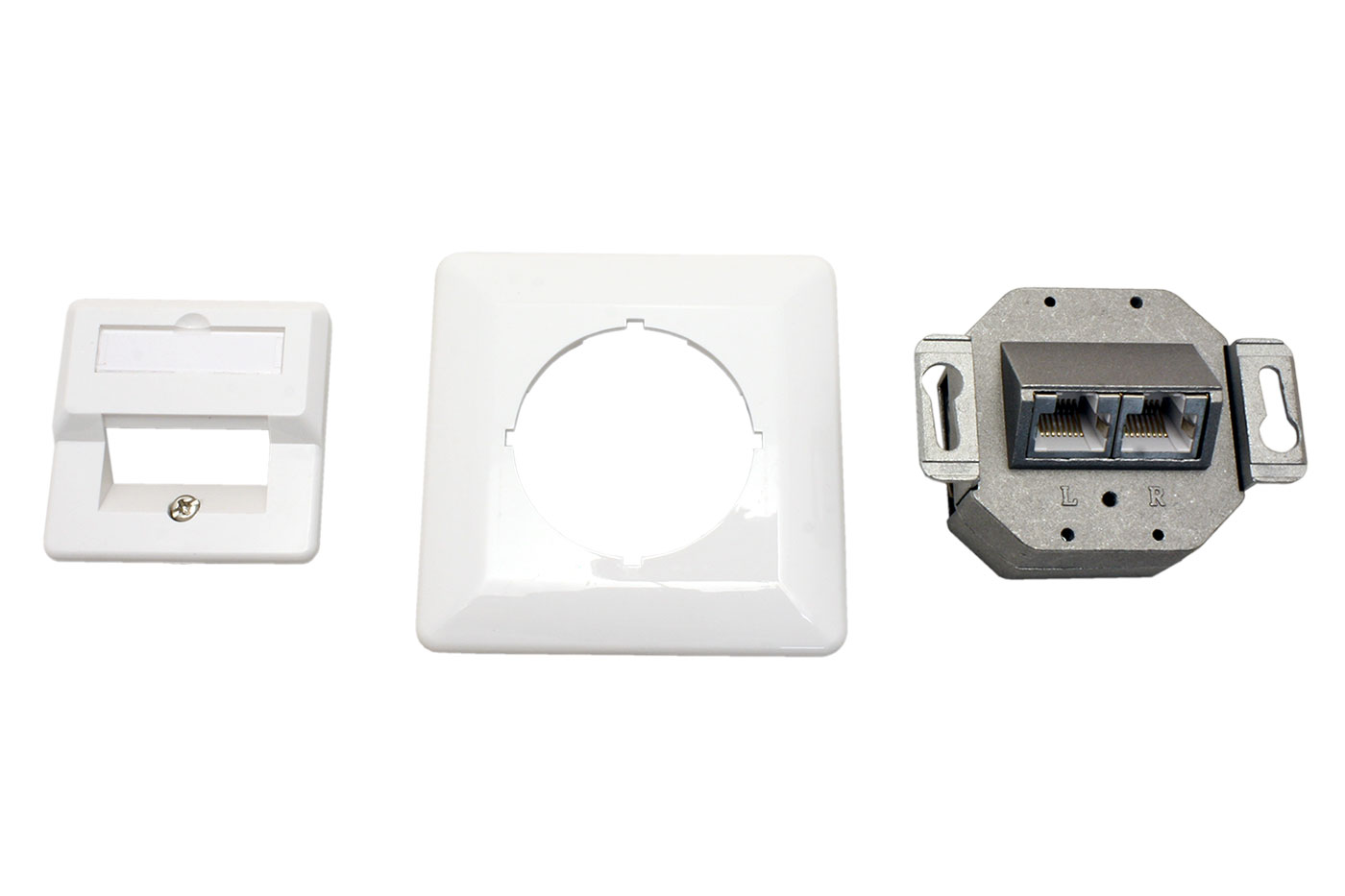 Stíněná zásuvka pro kabeláž kategorie 5e. Montáž pod omítku (do přístrojové montážní krabice).
