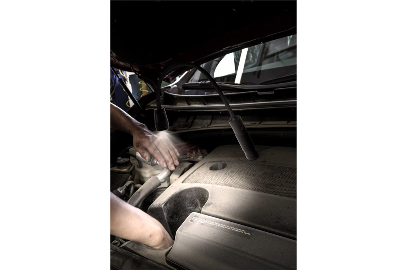 Ideální pro práci, volný čas a silniční asistenci. Magnet v rukojeti a flexibilní rameno umožňuje umístění svítilny na kovový podklad a přesné nastavení do požadované polohy.