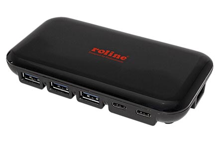 Pro připojení více USB zařízení k USB řadiči. Je osazen 4 konektory typu A a 3 konektory typu C. USB A porty podporují nabíjení BC1.2.