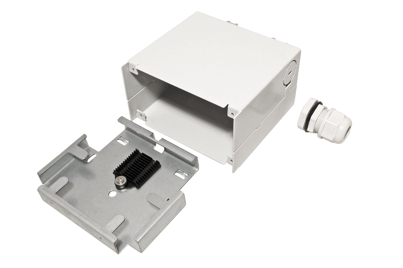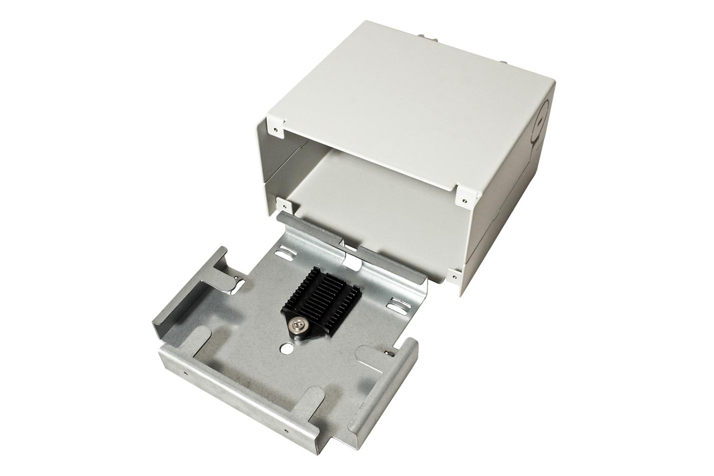 Kompaktní box pro zakončení a uspořádání optické kabeláže. Obsahuje kovovou kazetu s plastovým držákem svárů (12 pozic). Pro smontování je nutno použít čelo pro požadované optické spojky.