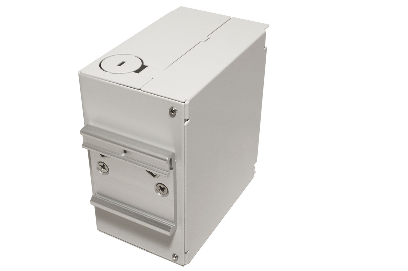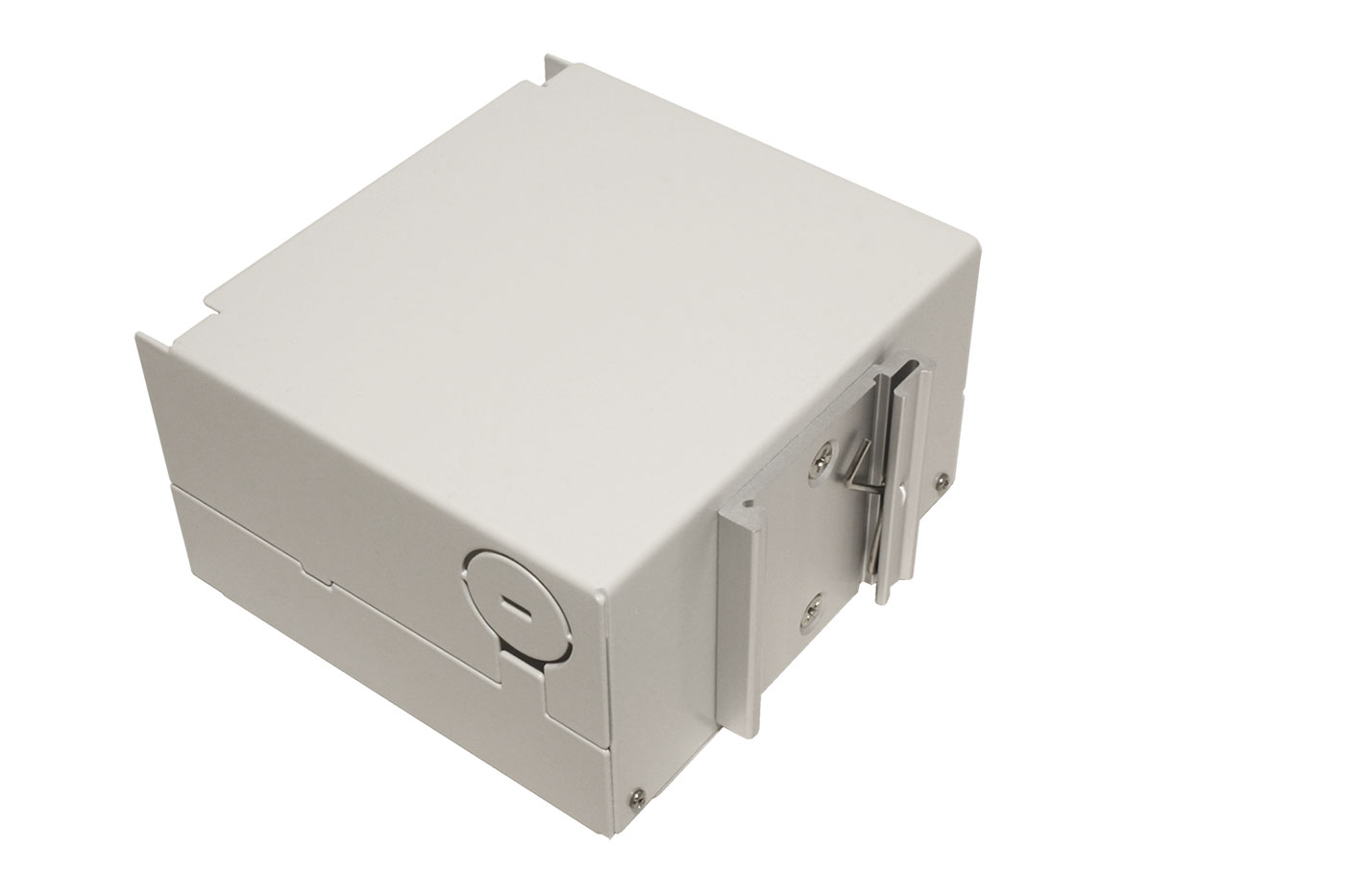 Box na optická vlákna montovatelný na DIN lištu. Bez čela.