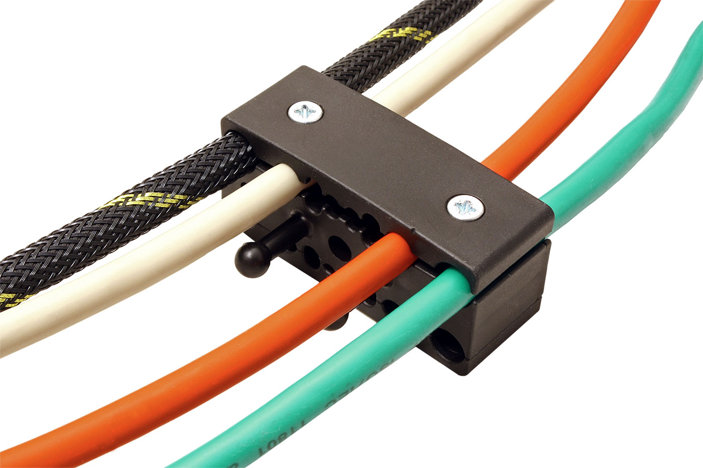 Prvek omezující tah kabelů v dlouhých organizátorech. Vhodná instalace je především před svislými úseky vedení pro zamezení tahu kabelů do vodorovné části. Modul je navržen pro uchycení kabelů 4x VGA/HDMI nebo napájecí, 4x LAN, 4x telefon a 4x audio. Připojit lze ke všem organizátorům se 2 trny (Cube, Premium, Pro, Clasic)