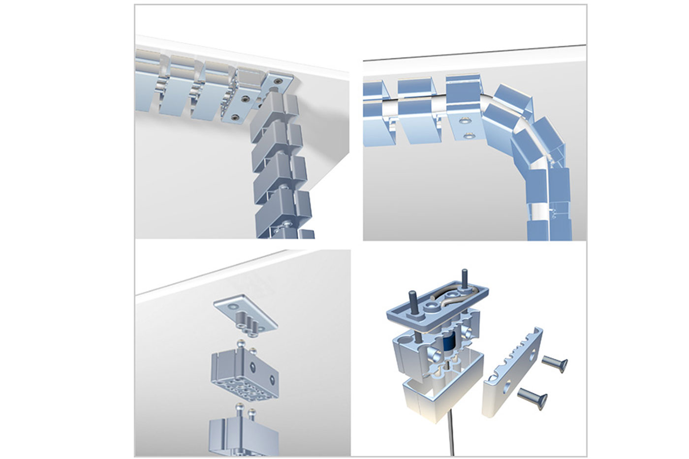 - utažení kabelů do profilu pomocí 2 vrutů