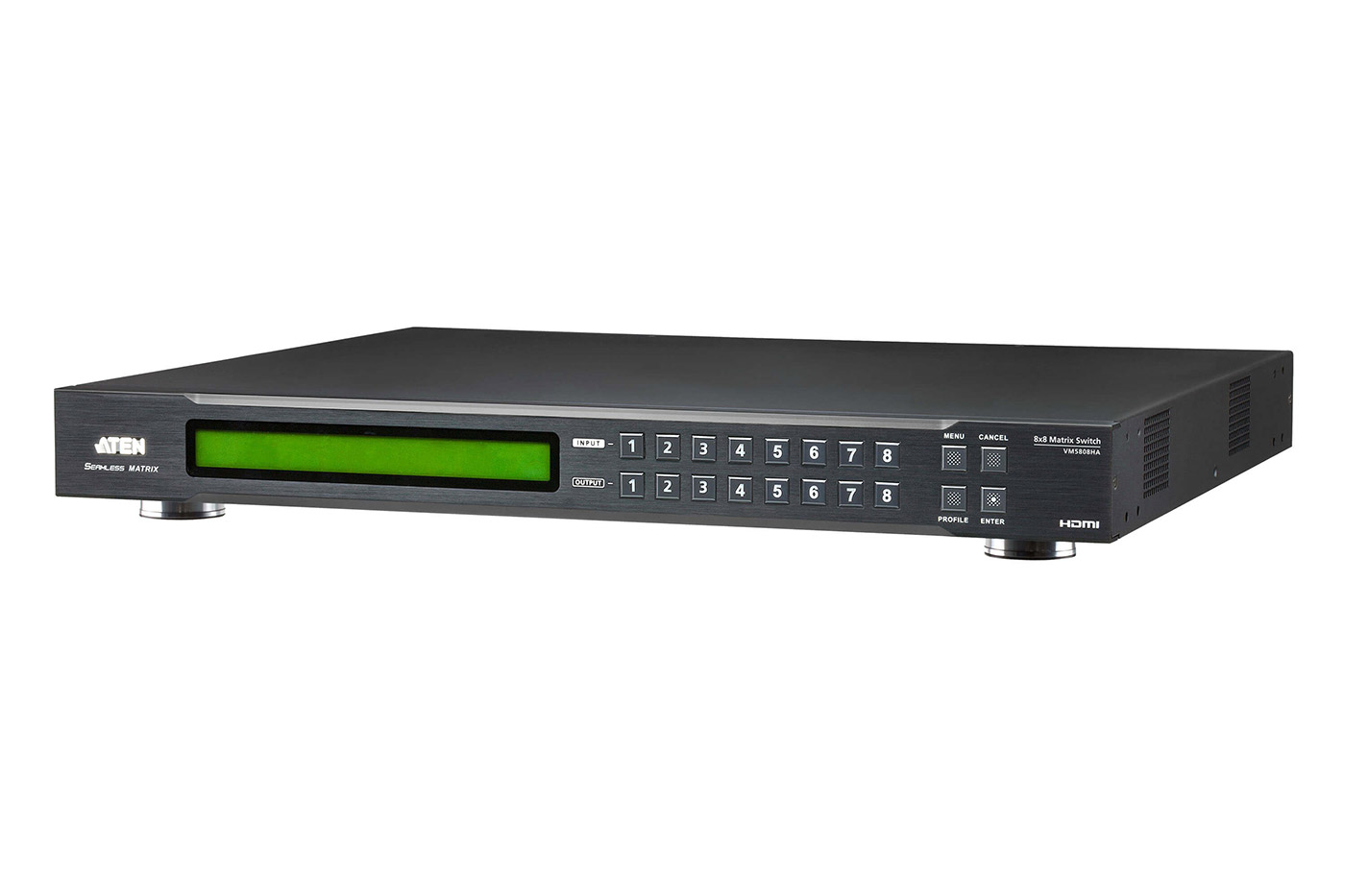 Maticový přepínač HDMI z 8 vstupů na 8 výstupů s funkcí scaler a video wall.