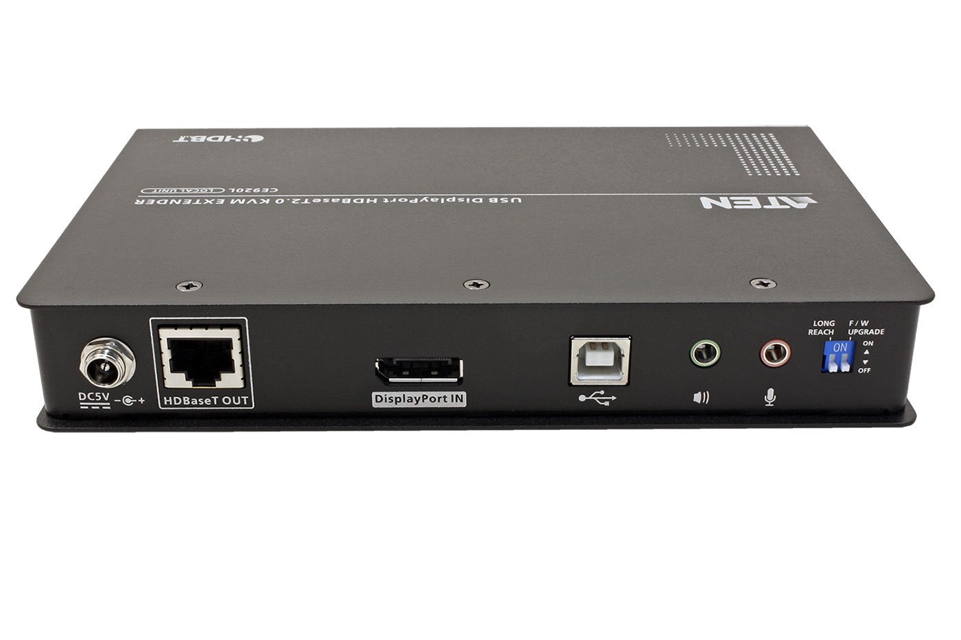 Aktivní adaptér pro přenos nekomprimovaného DisplayPort signálu, USB a RS232 po TP kabeláži s technologií HDBaseT 2.0. Podporuje přenos na dlouhé vzdálenosti i při vysokém rozlišení (4K).