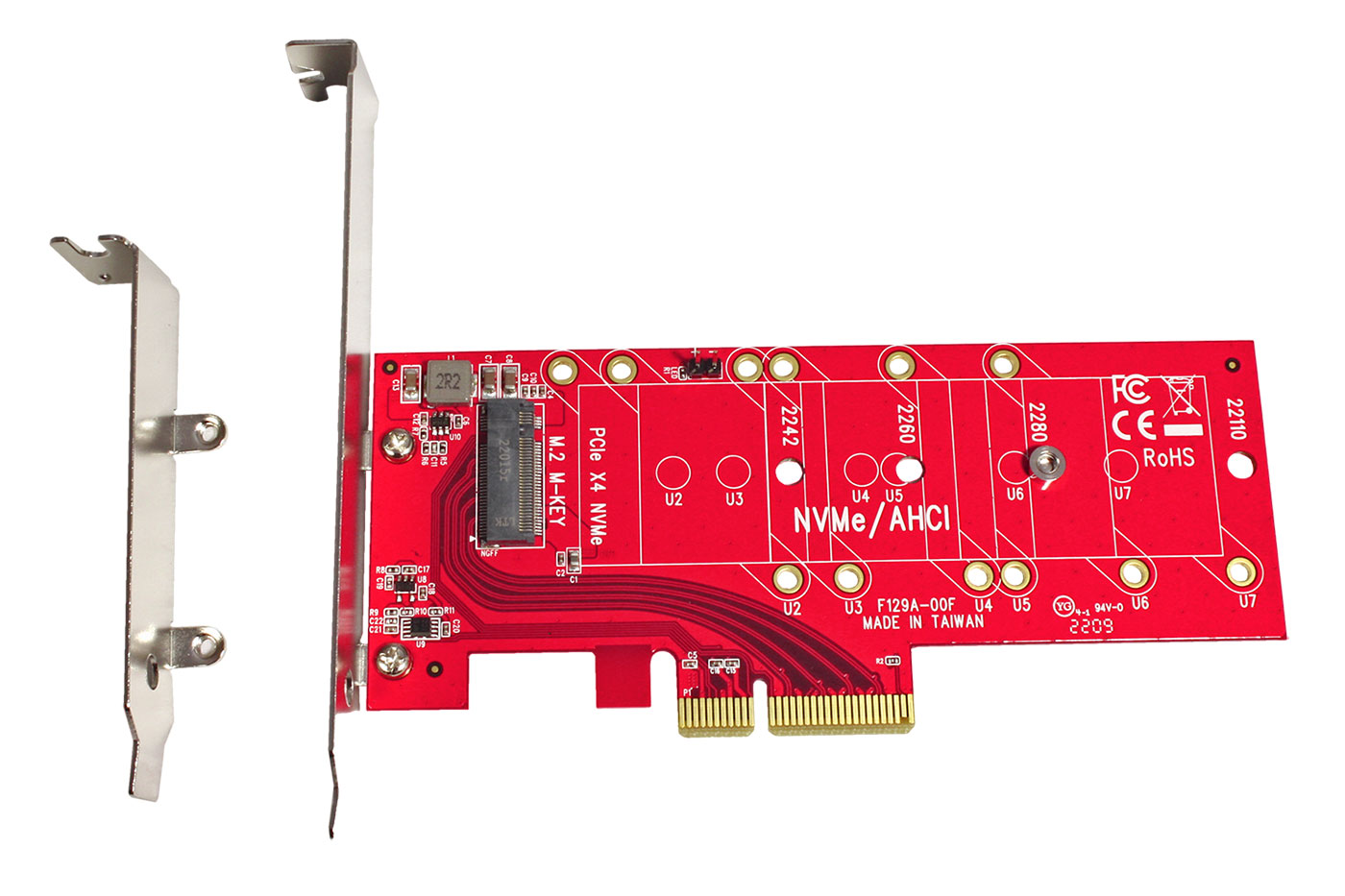 Umožňuje do PCIe 2.0 / PCIe 3.0 / PCIe 4.0 připojit jedno zařízení s konektorem M.2 (klíč M nebo B+M) s maximální délkou 110mm. Podporuje NVMe SSD s vyšší spotřebou až 5A. Do počítače tak lze snadno připojit rychlý SSD disk.