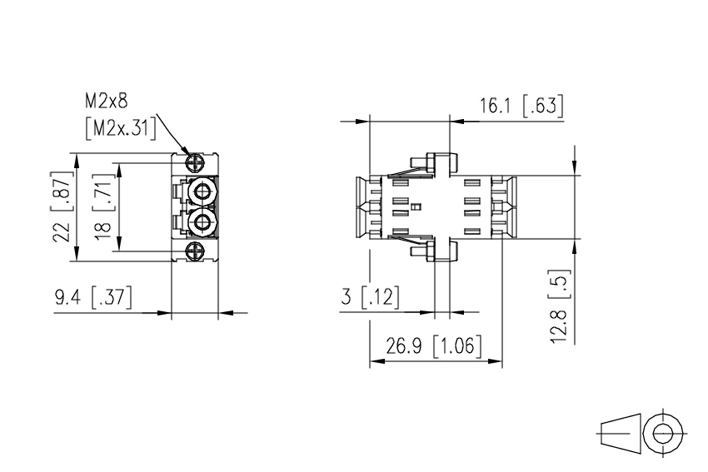 Spojka / průchodka pro optické kabely s konektory LC. Pro dvě vlákna (1x duplex).