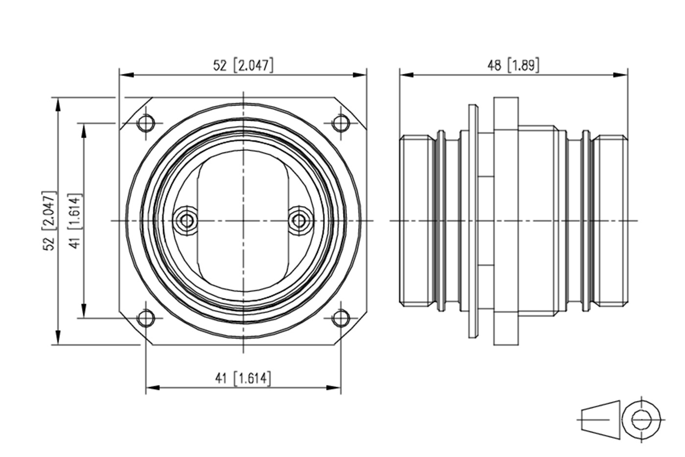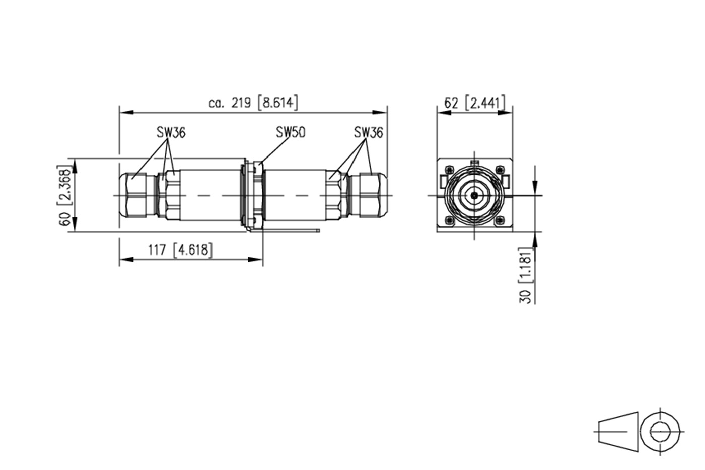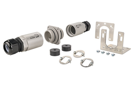Spojka pro kabely metalické i optické s krytím IP69K a montážním držákem.
