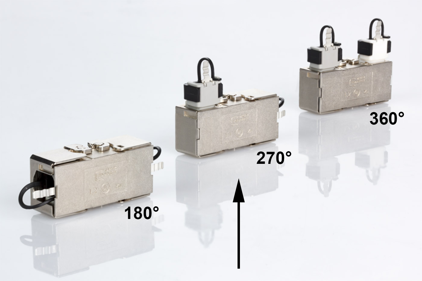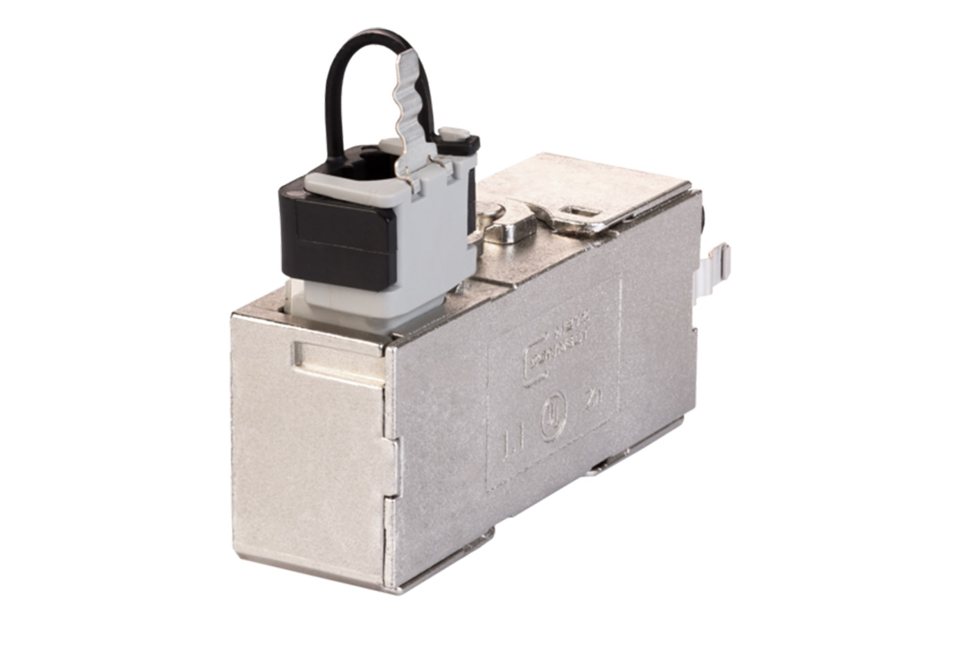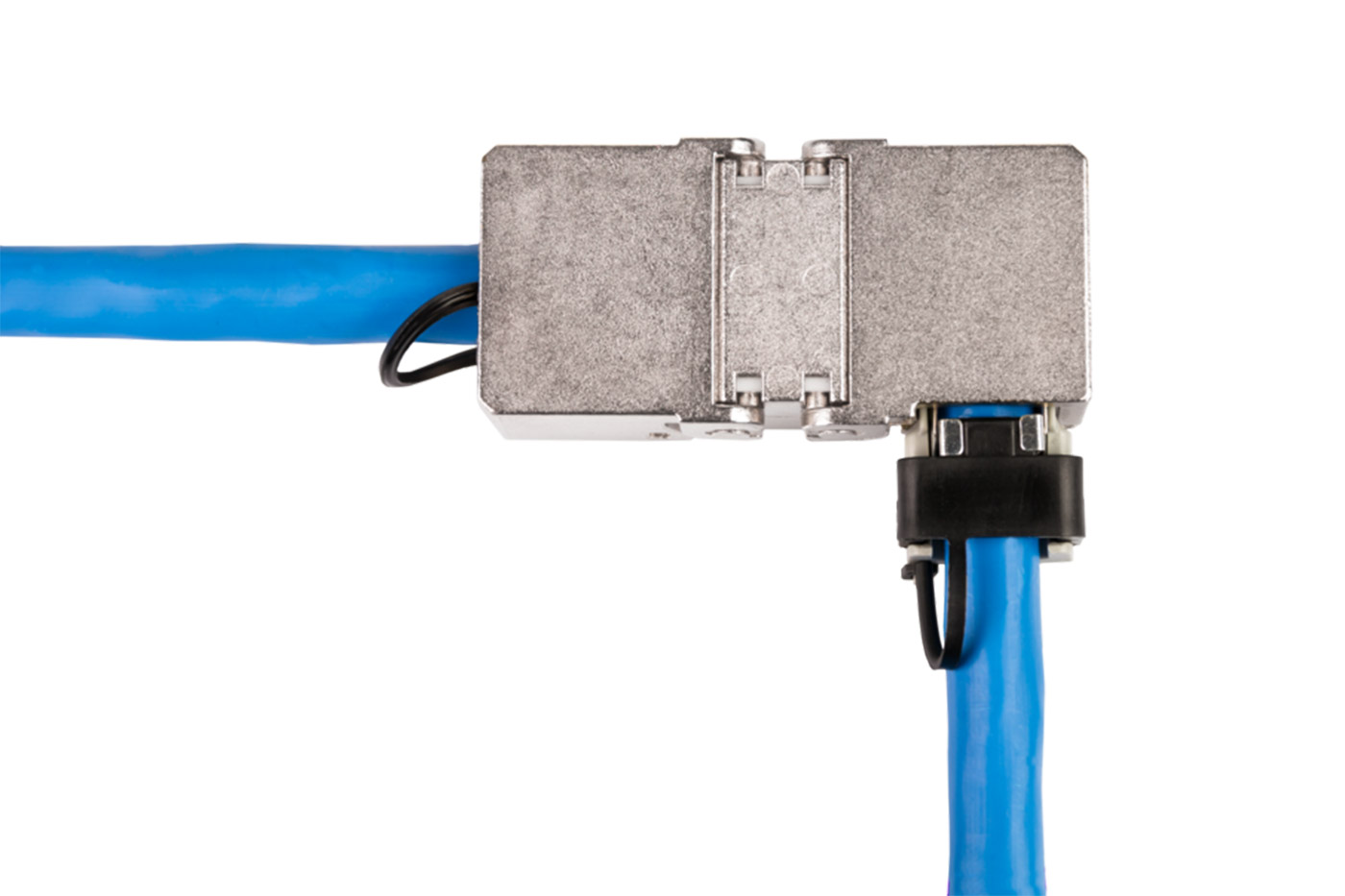 Prvek umožňující spojení stíněných 8-žilových kabelů kategorie 6a s kompaktními rozměry.