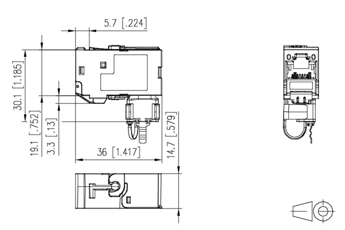MC modul s konektorem RJ45 s nařezávacím konektorem 270°.