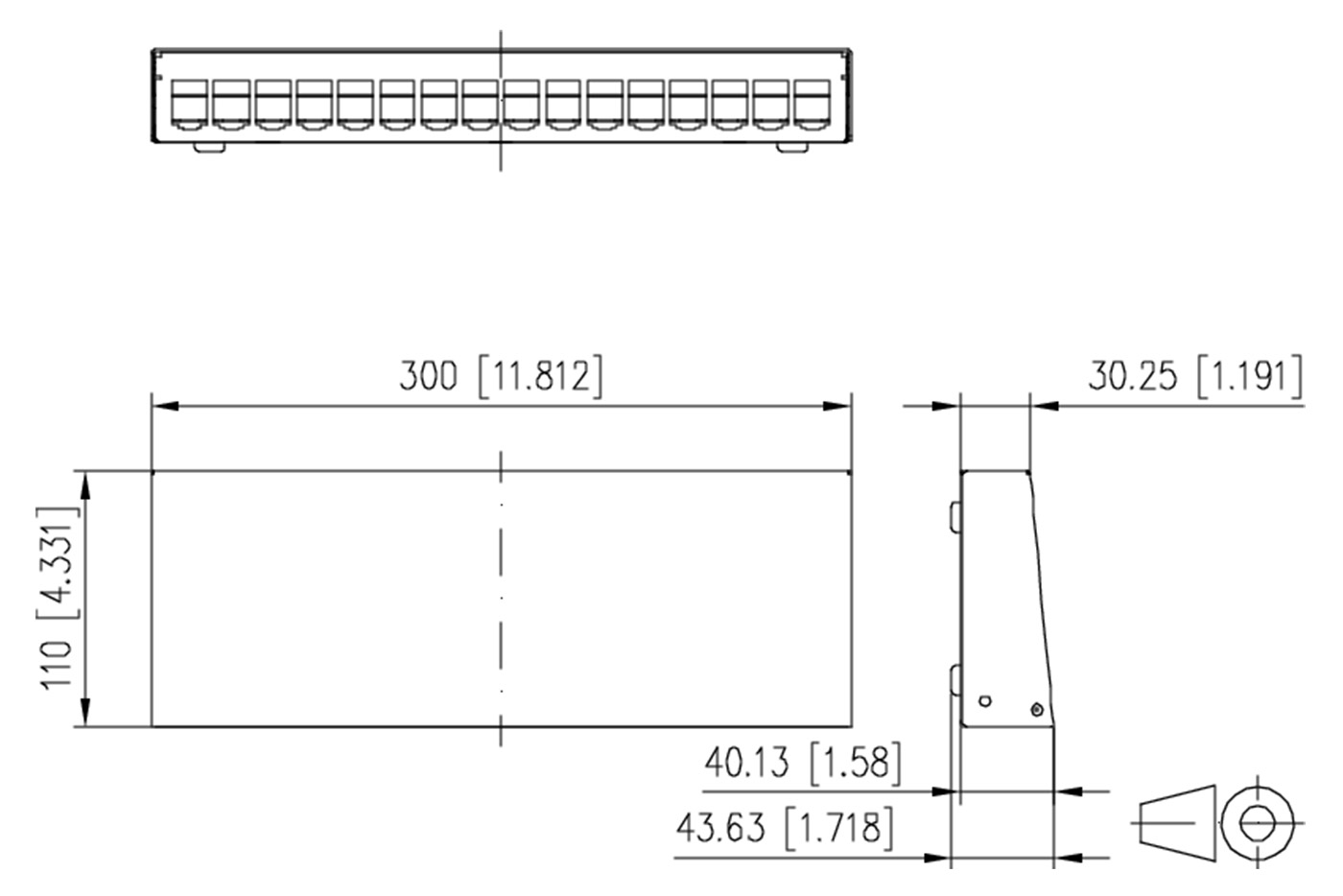 Univerzální neosazený patchpanel pro instalaci MC modulů.