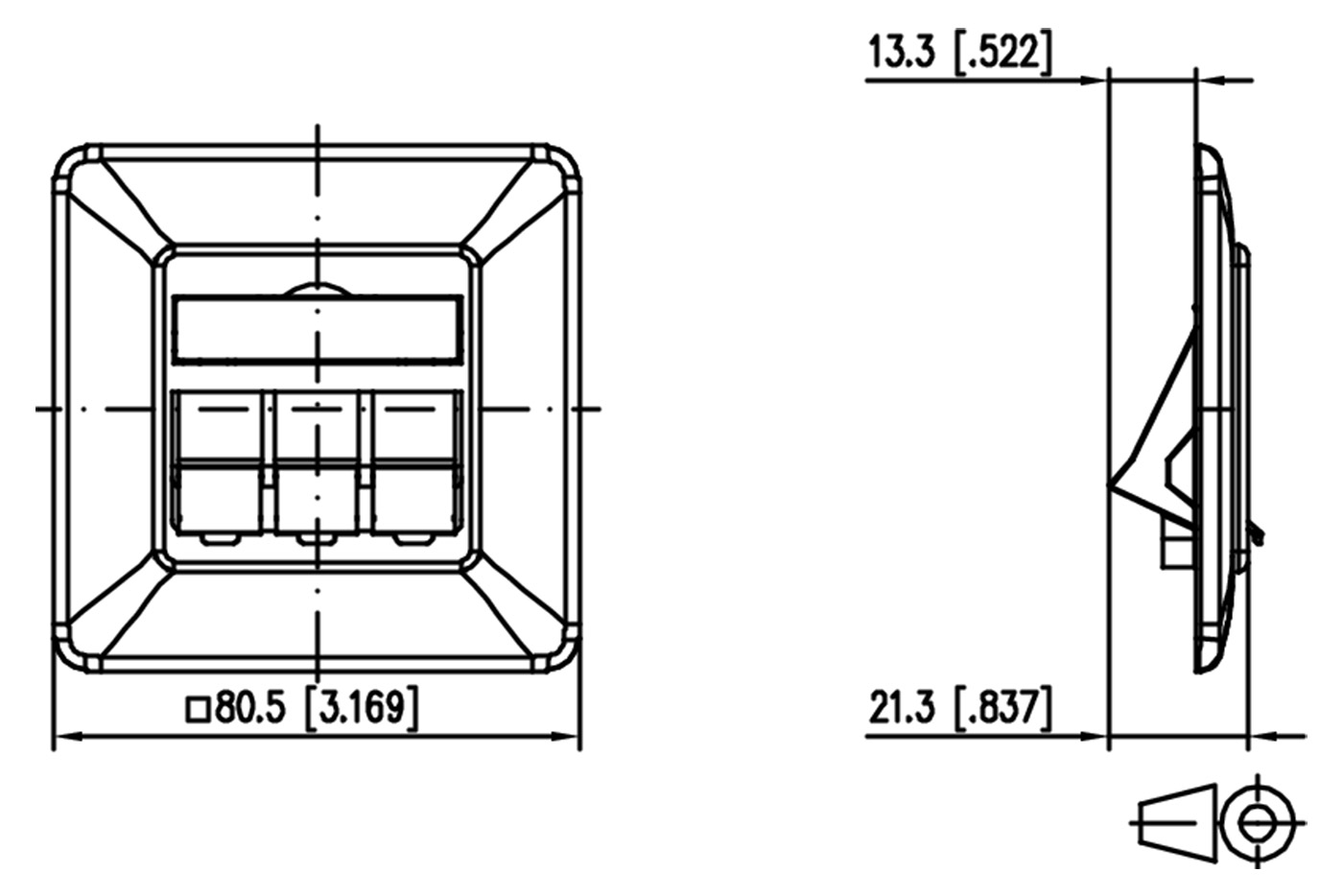 Zásuvka pro osazení 3x MC modul. Montáž pod omítku.