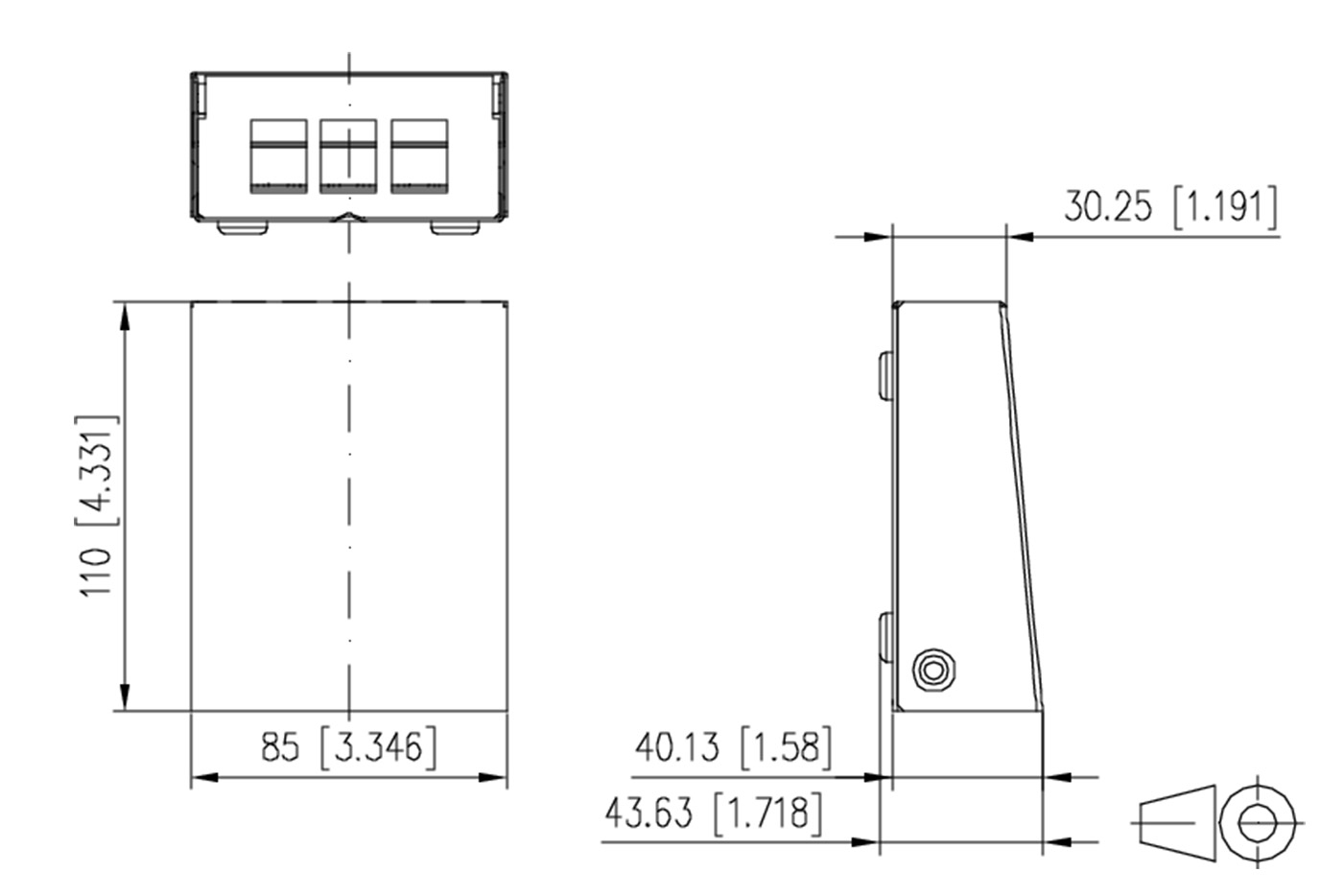 Stíněný, 3-portový patchpanel určený pro montáž na stěnu.