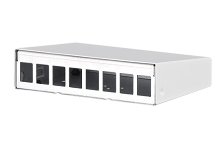 Stíněný, 8-portový patchpanel určený pro montáž na stěnu.