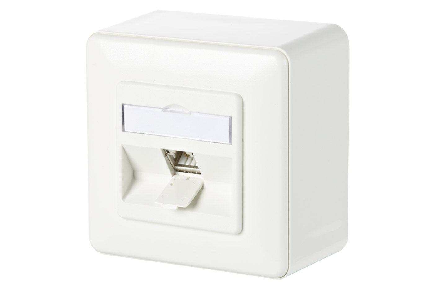 Stíněná zásuvka osazená 1x MC modulem kat. 6a 180°. Montáž na omítku.