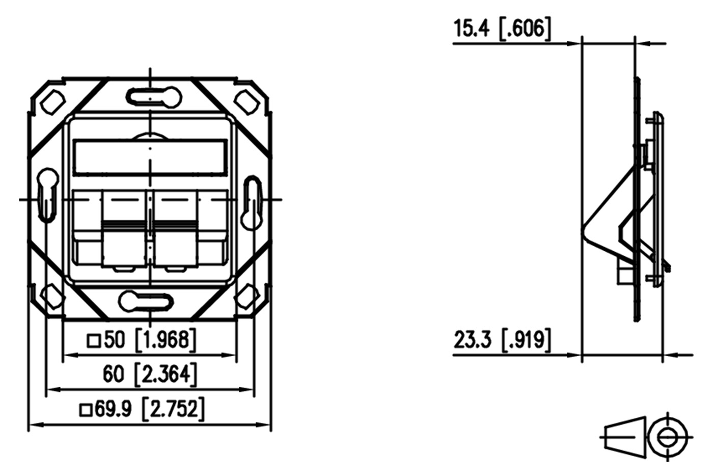 Zásuvka pro osazení 2x keystone. Montáž pod omítku. Bez vnějšího plastového rámečku.