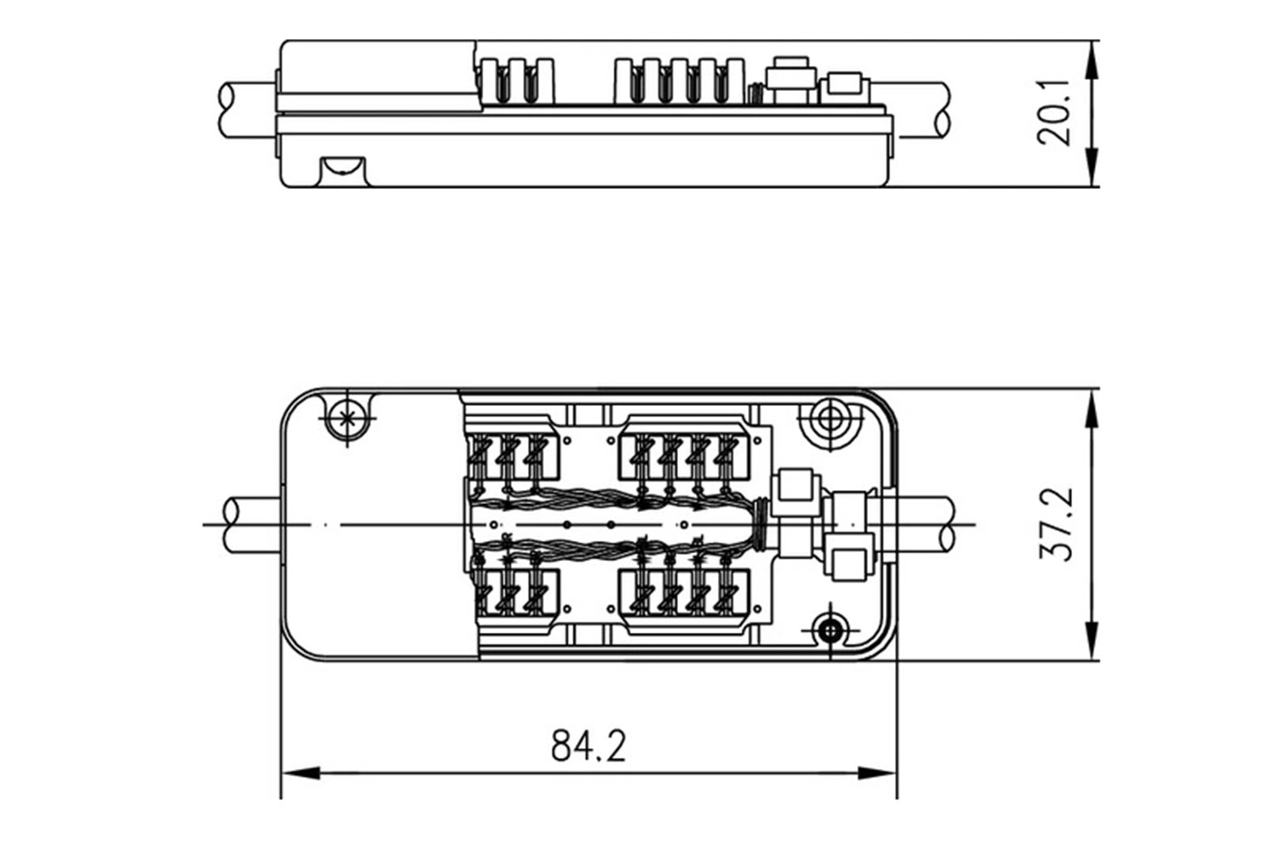 Prvek umožňující spojení 8-žilových kabelů až kategorie 7a pomocí nařezávacích konektorů.