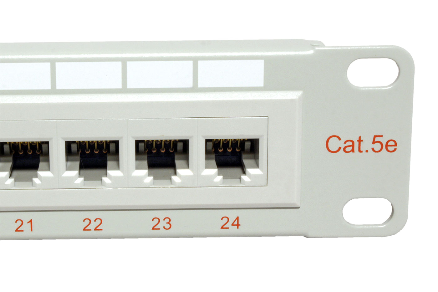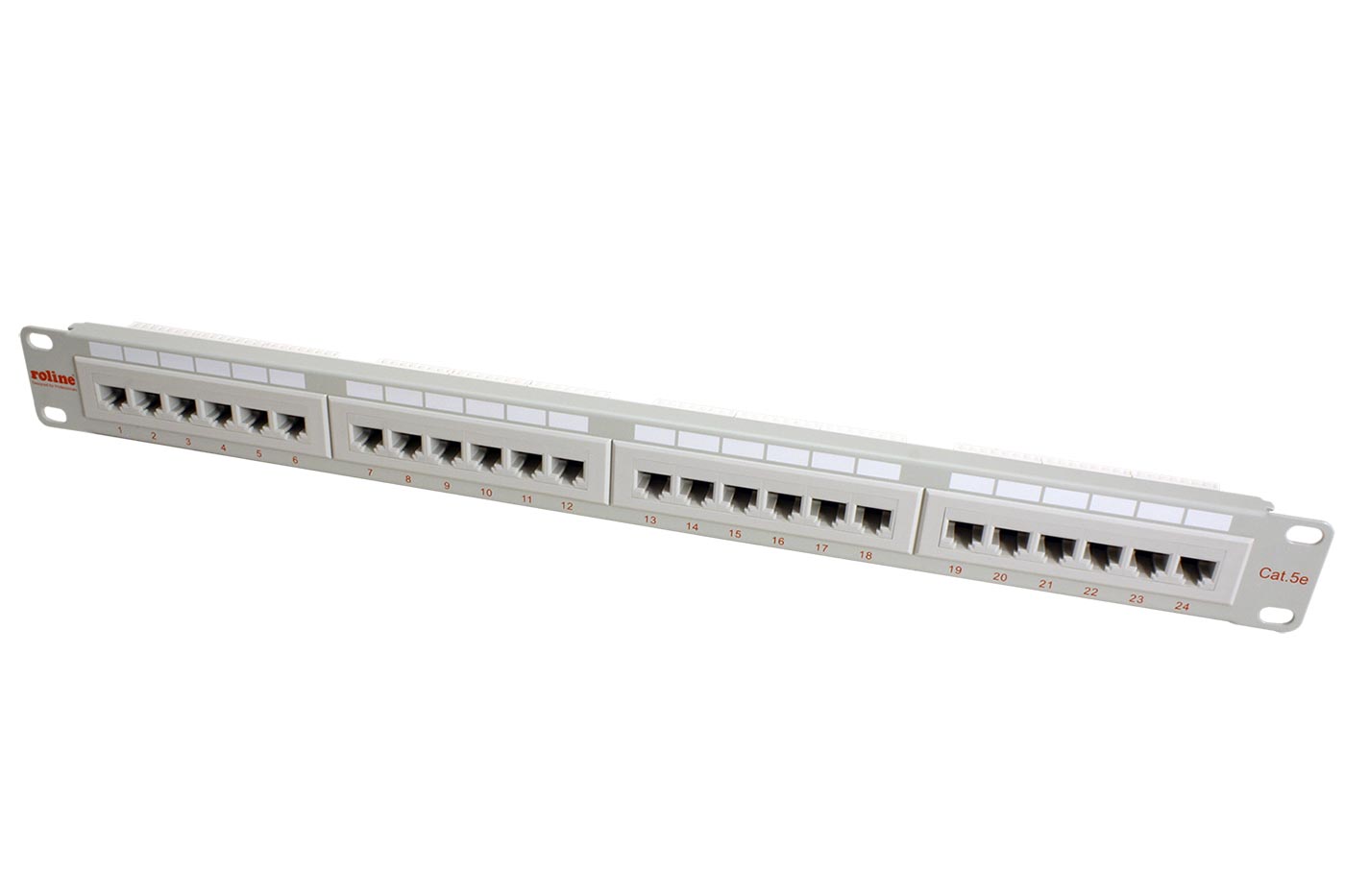 Nestíněný, 24-portový patchpanel kategorie 5e pro montáž do 19“ rozvaděče (výška 1U).